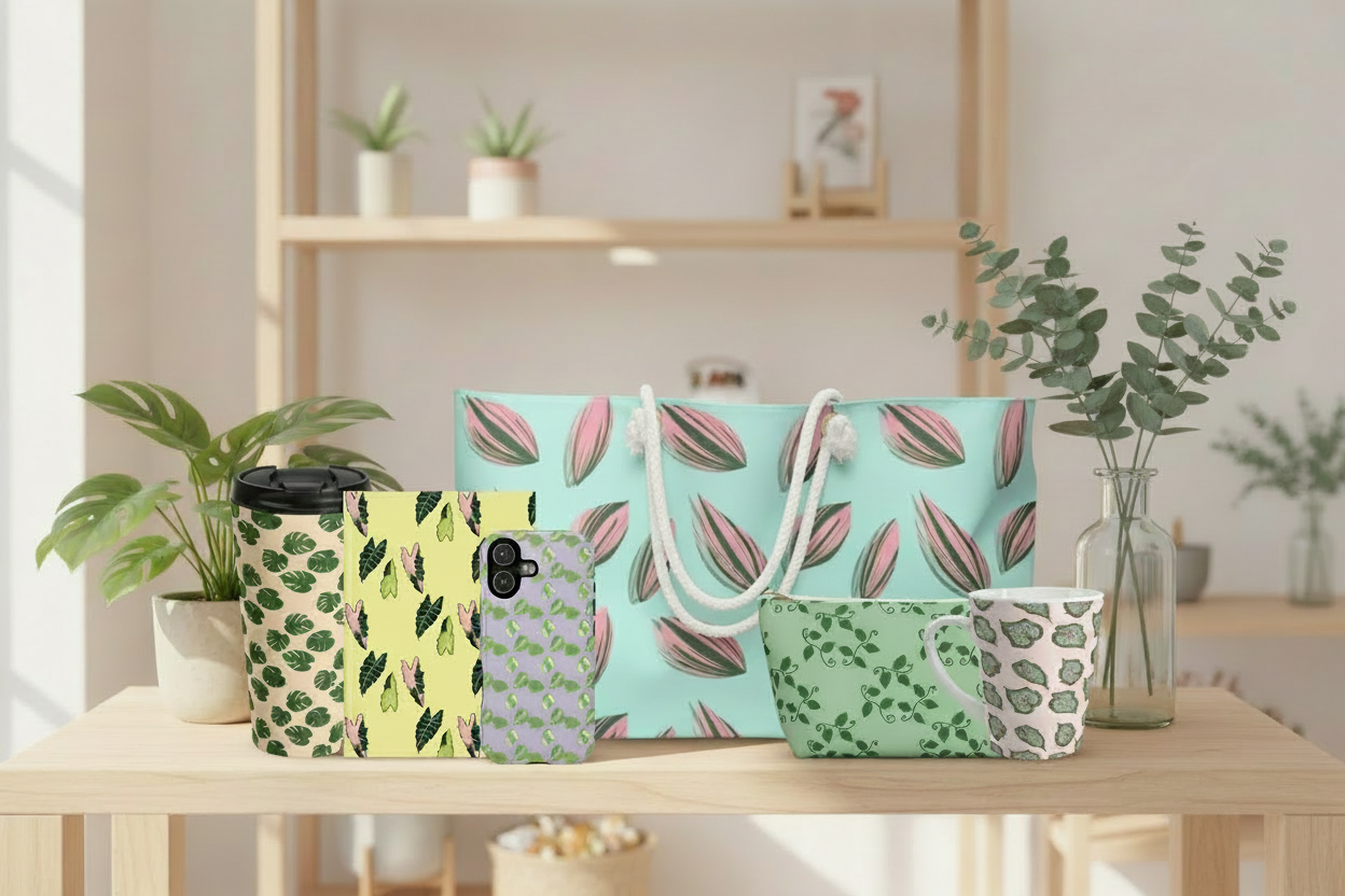 With some of our favorite plants! Monstera, Hoya, Pothos, Alocasia, Tradescantia, and Begonia