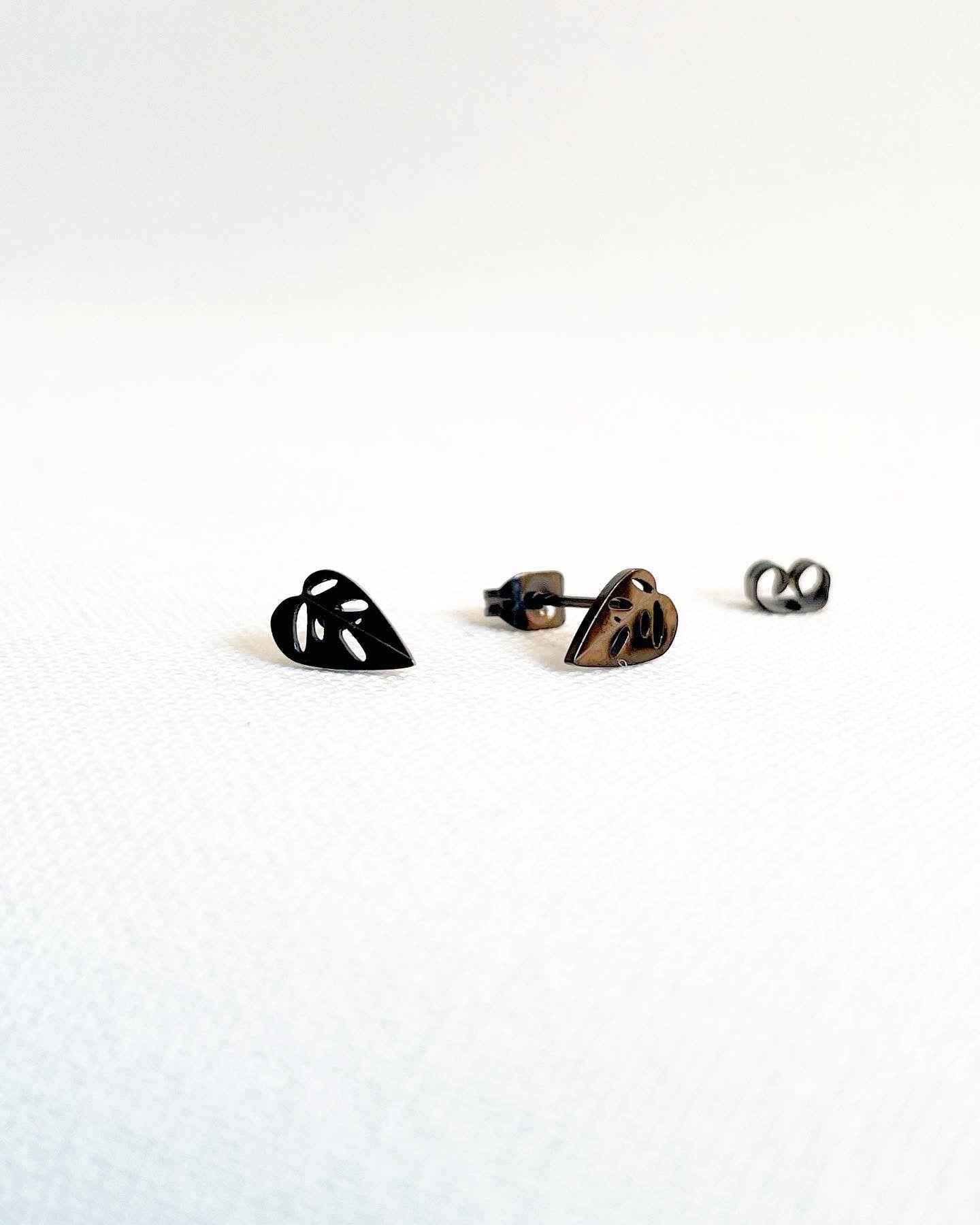 Hypoallergenic Monstera Adansonii mini plant stud earrings
