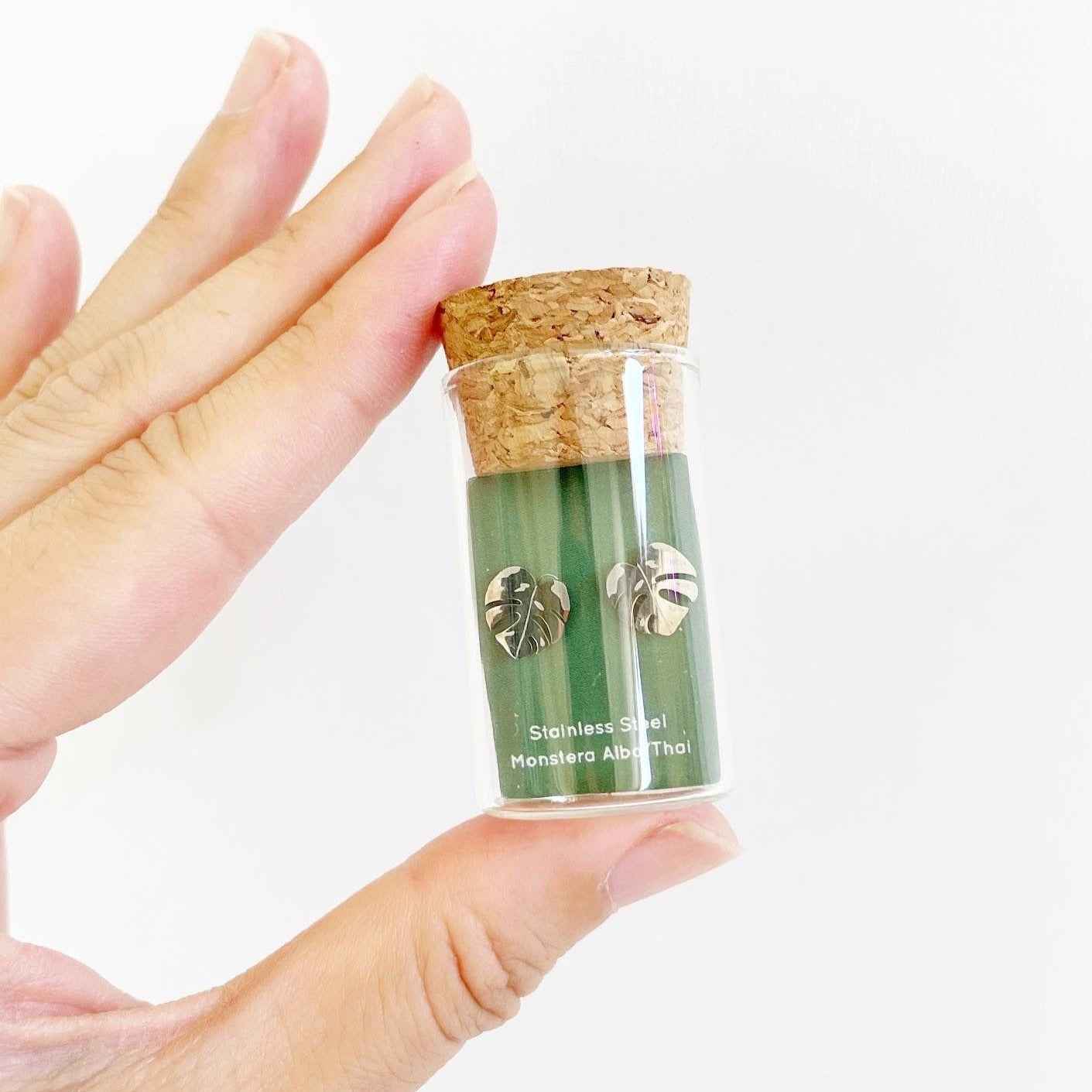 Plant Dosage | Hypoallergenic Tiny Dainty Monstera Albo/Thai earring studs | Gift for Plant Mama Daddy Parent