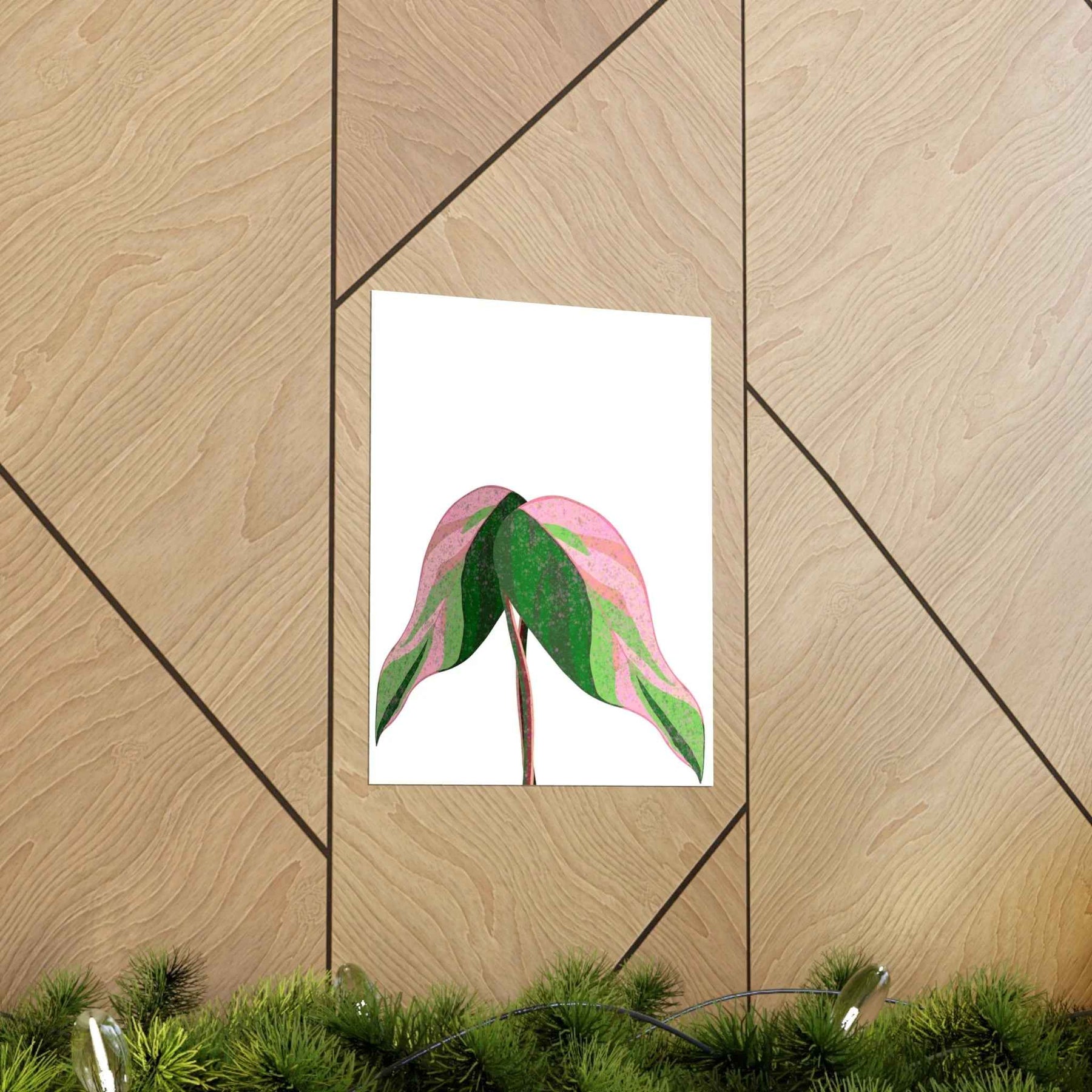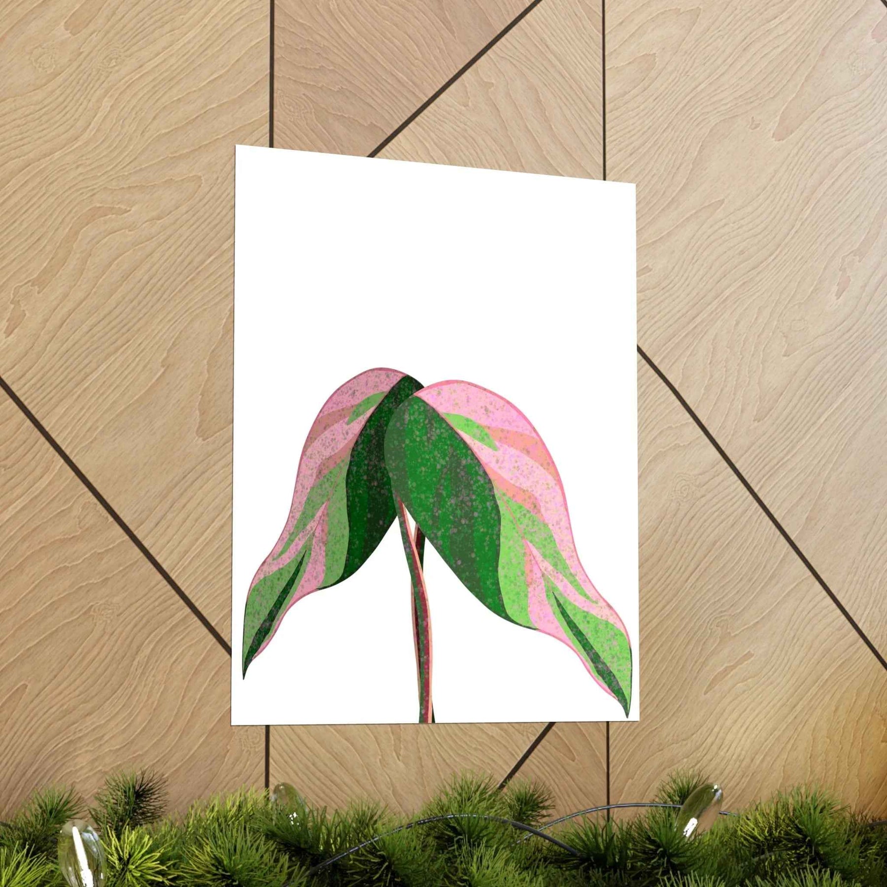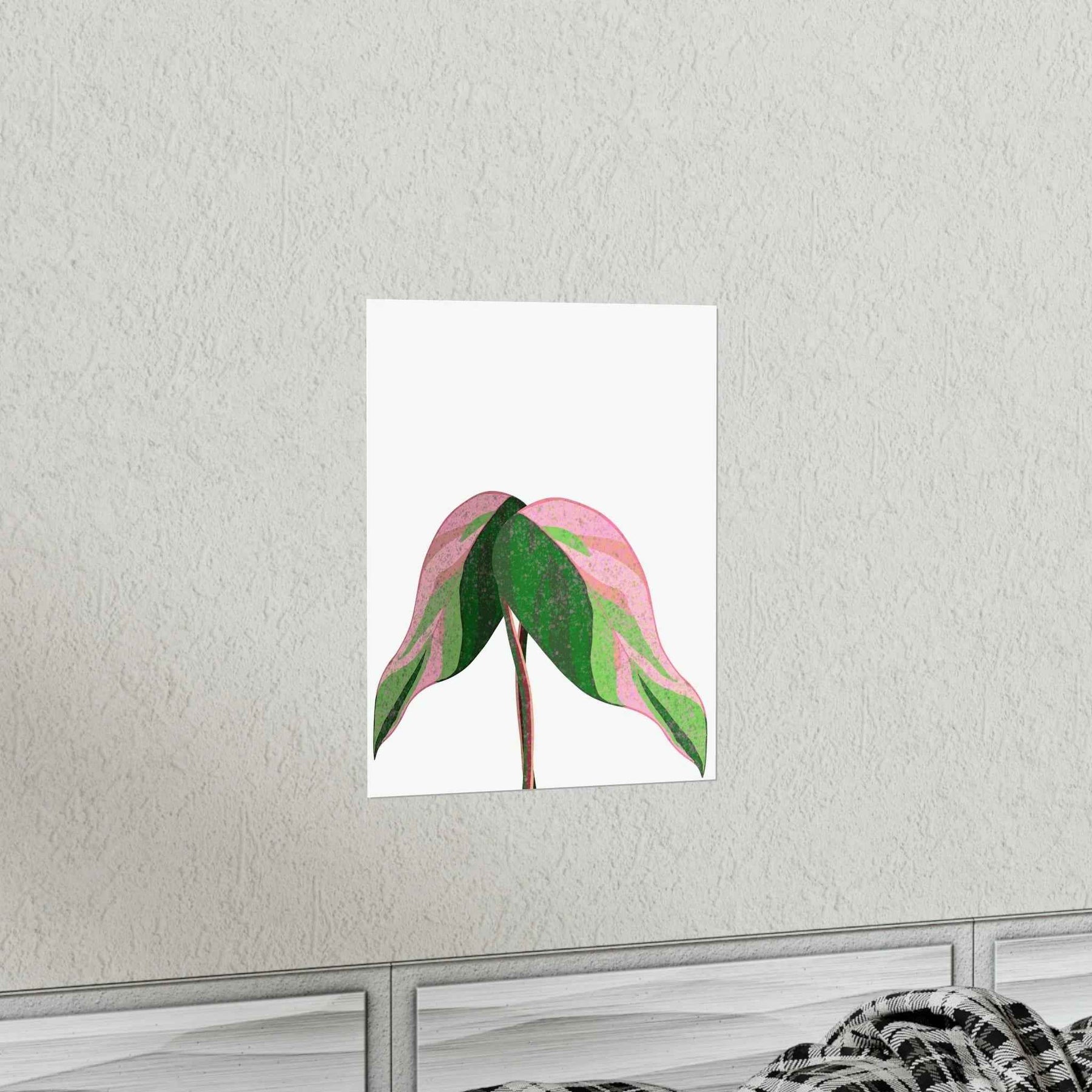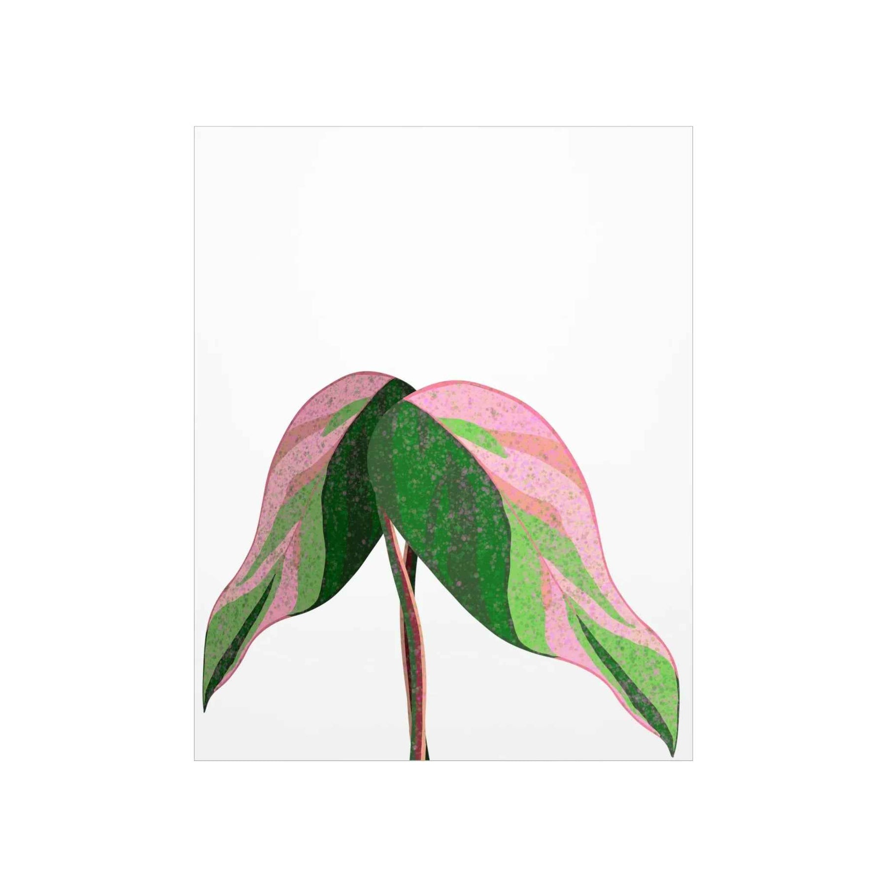 • Hand-drawn pink leaf artwork showcasing the rare variegation that elevates plant decor from mere posters to collectible wall art.