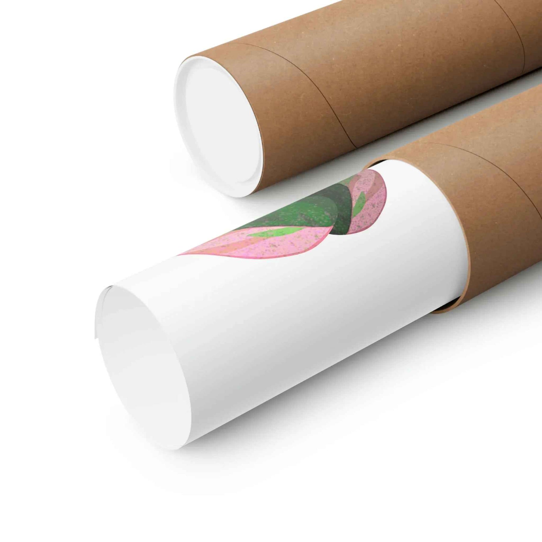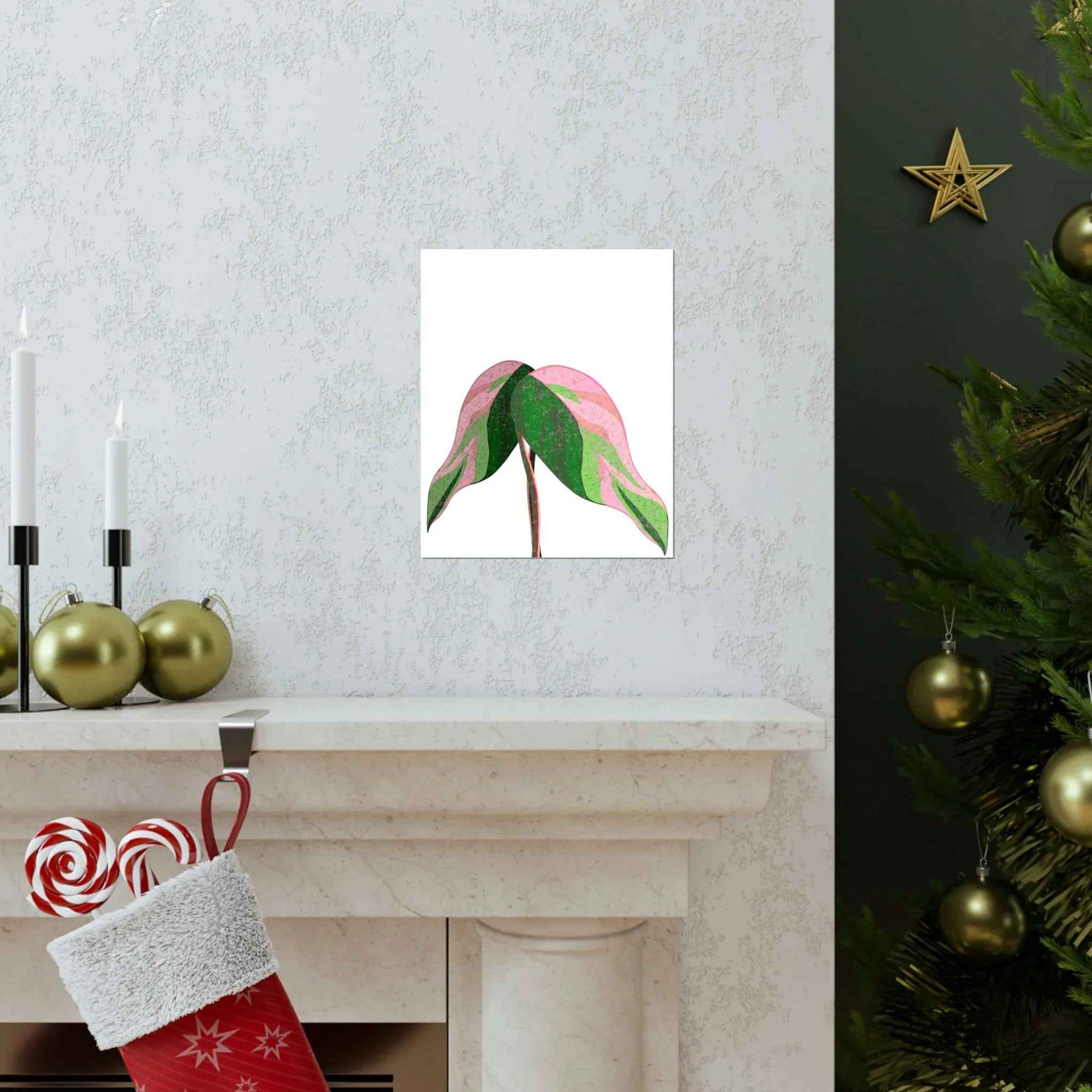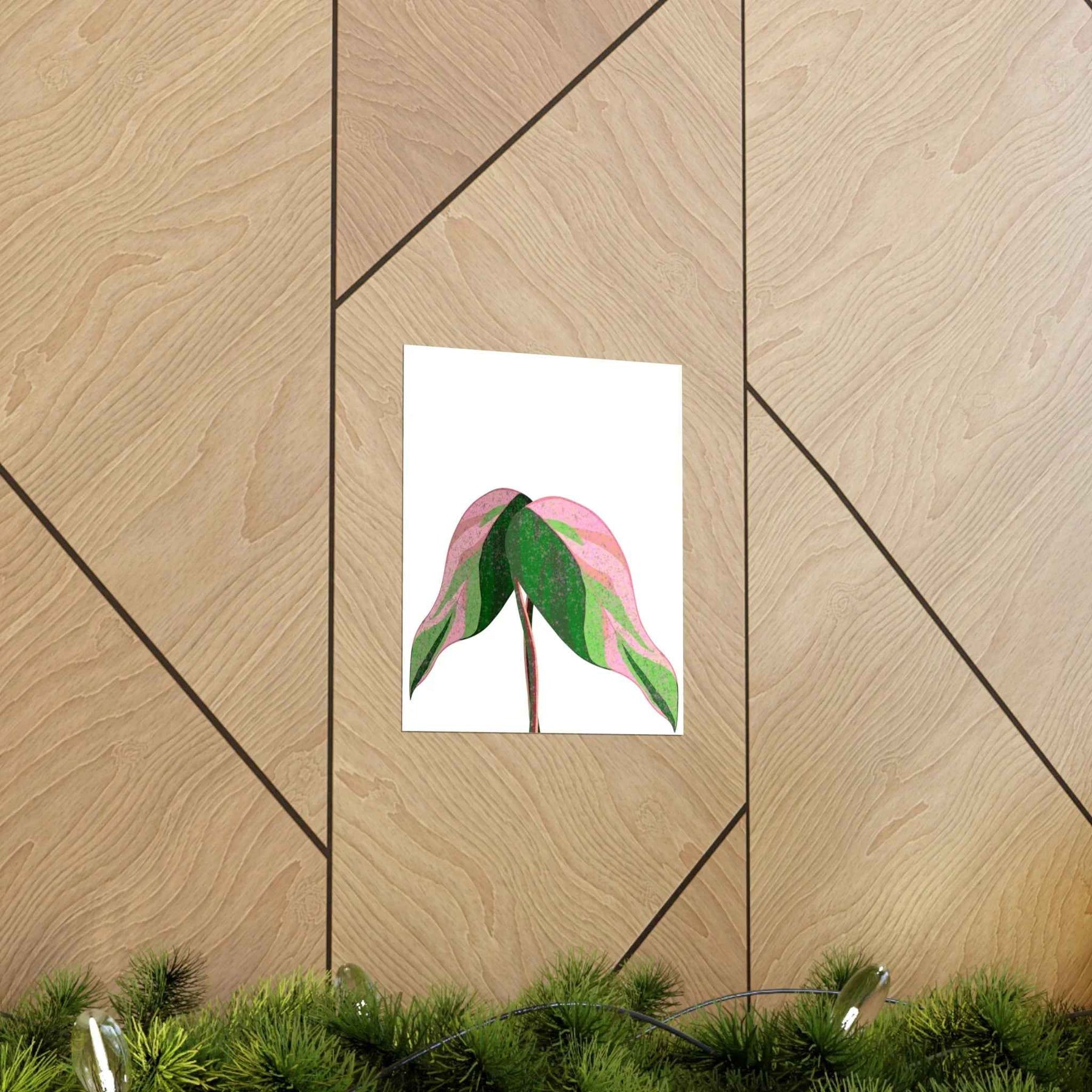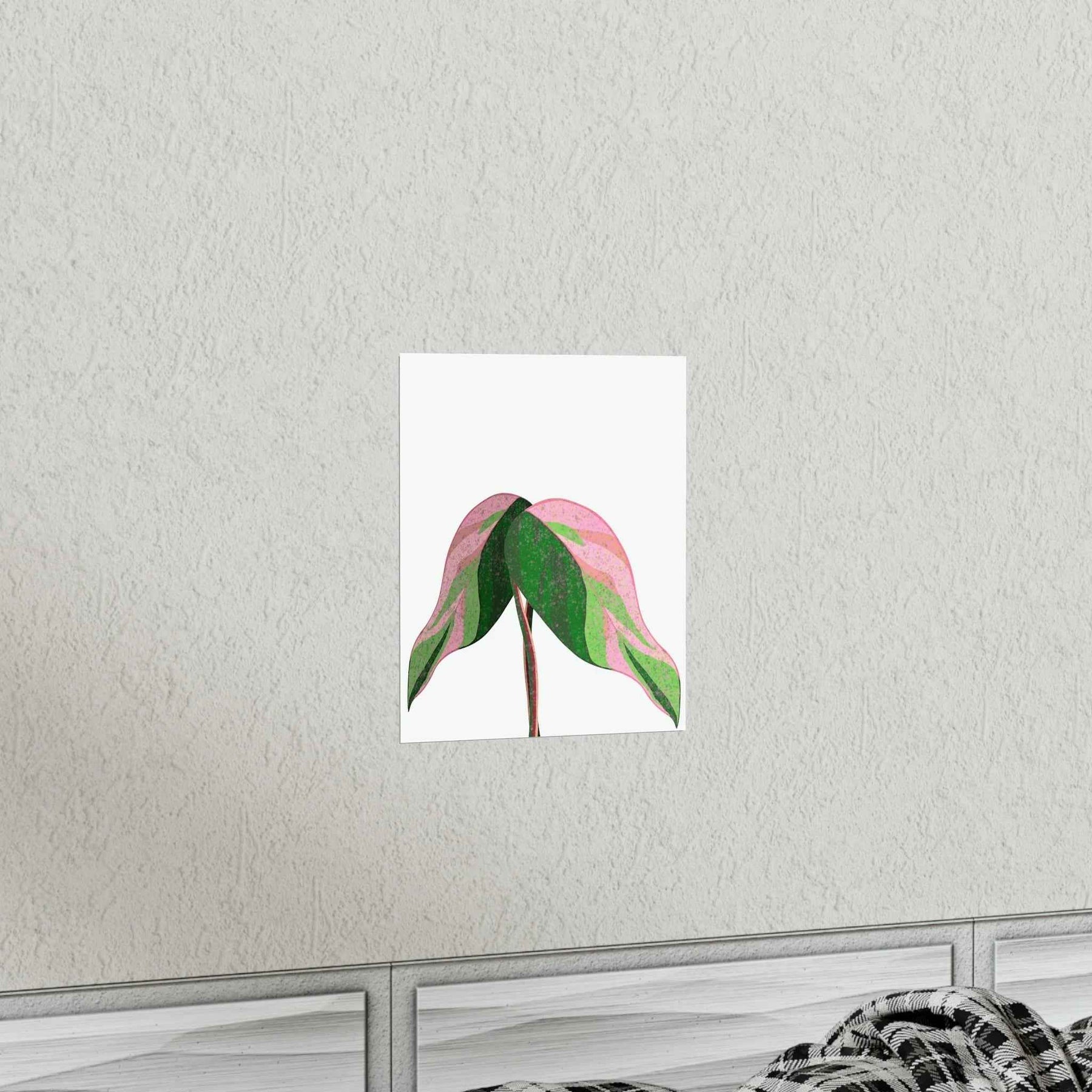 • Hand-drawn pink leaf artwork showcasing the rare variegation that elevates plant decor from mere posters to collectible wall art.