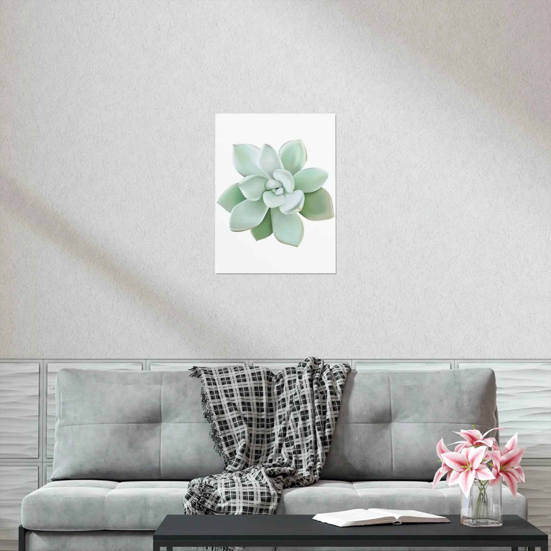 Why this succulent print stands out: the precise rosette arrangement and cool, pale hues create an architectural feel that complements minimalist, coastal, and biophilic design schemes. It’s a quiet, sophisticated statement that adds visual calm and a touch of natural wonder to any room.