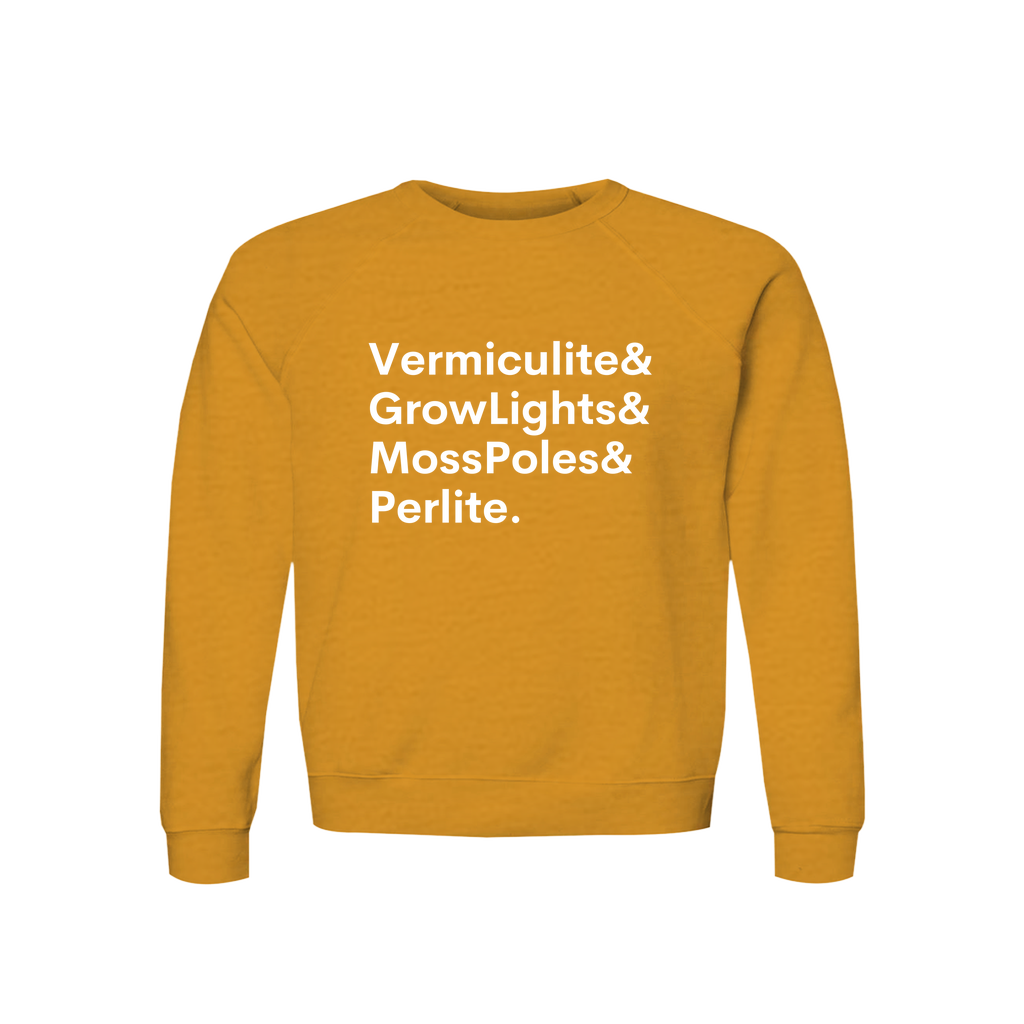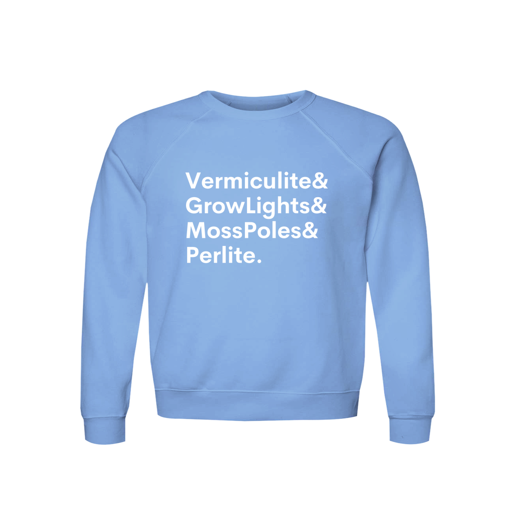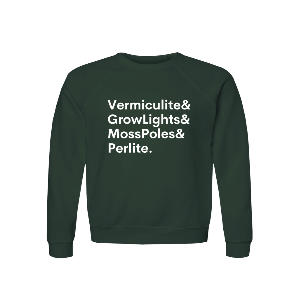 Plant Lover Sweatshirt Organic Cotton Raglan Cozy Gardener Gift Vermiculite GrowLights MossPoles Perlite