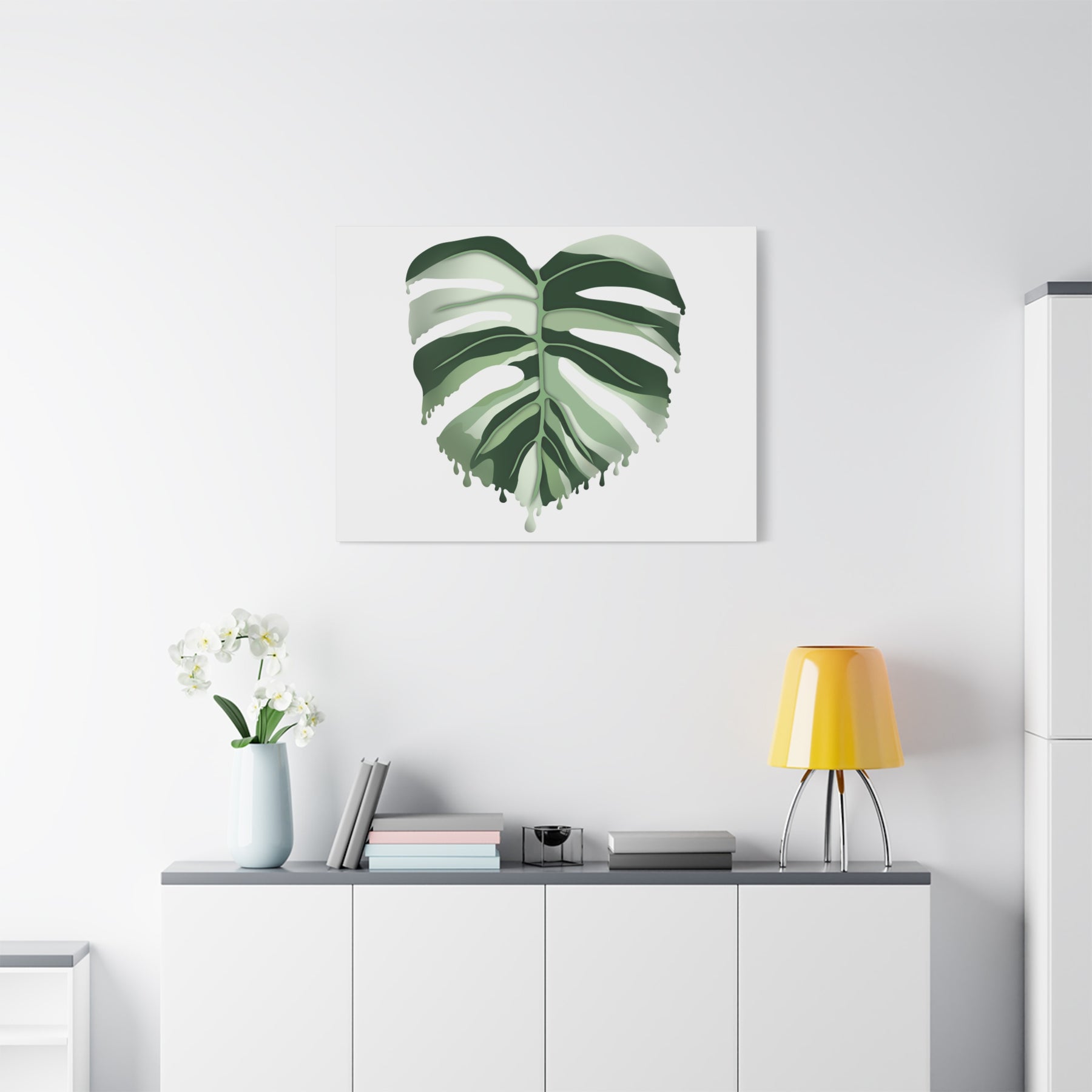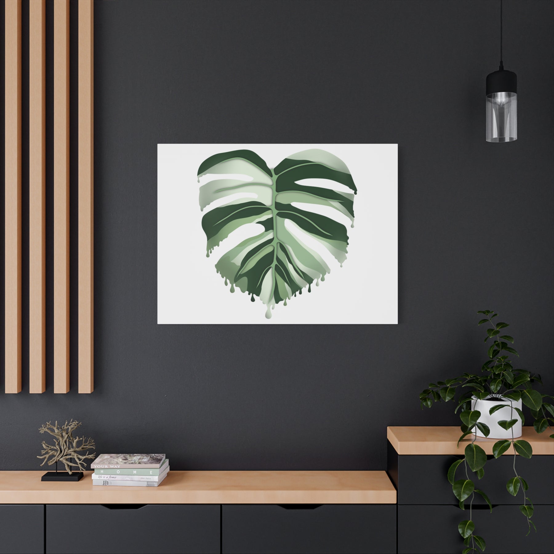 Why choose this Melting Monstera Albo Canvas over other wall art? It blends a high-end, gallery-ready presentation with practical durability and thoughtful materials. The matte finish minimizes reflections, so your art looks stunning from every seat in the room. The color-accurate print ensures the greens stay rich, while the ready-to-hang frame saves you time and effort on installation.