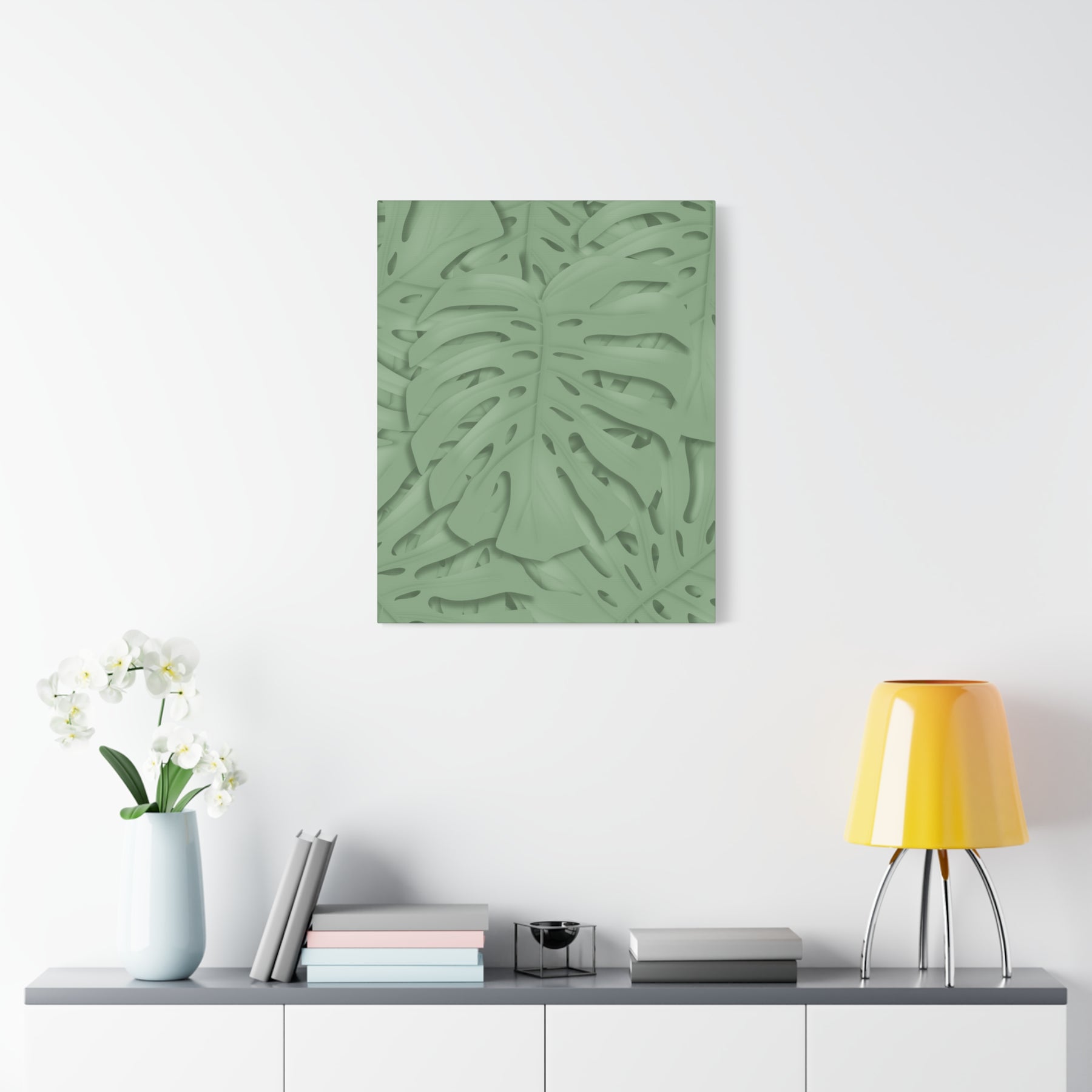 Designed for everyday living spaces, this botanical wall art uses a treated cotton canvas with a smooth matte finish. The matte surface minimizes glare, letting every cutout and contour of the Monstera leaf read clearly under varied lighting—from bright daylight to soft evening lamps. The color guaranteed canvas process preserves deep sage greens and delicate tonal shifts, so the artwork remains vibrant and true for years without fading.