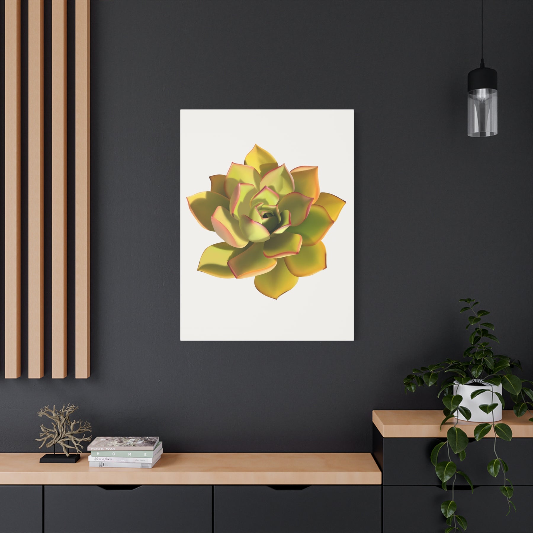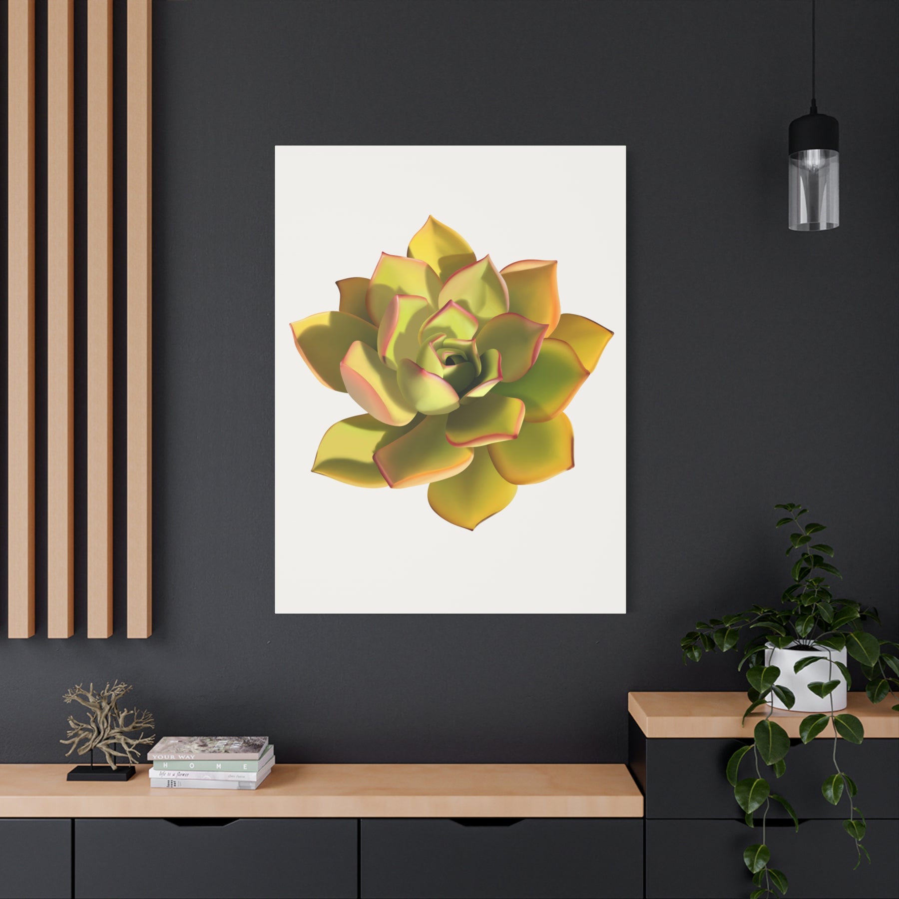 Designed for versatile spaces, this Noble Aeonium Succulent Canvas excels as a focal point in living rooms, home offices, bedrooms, or entryways. Its vibrant yet refined presence pairs beautifully with neutral tones, natural textures, or other botanical prints for a cohesive, nature-inspired gallery wall.