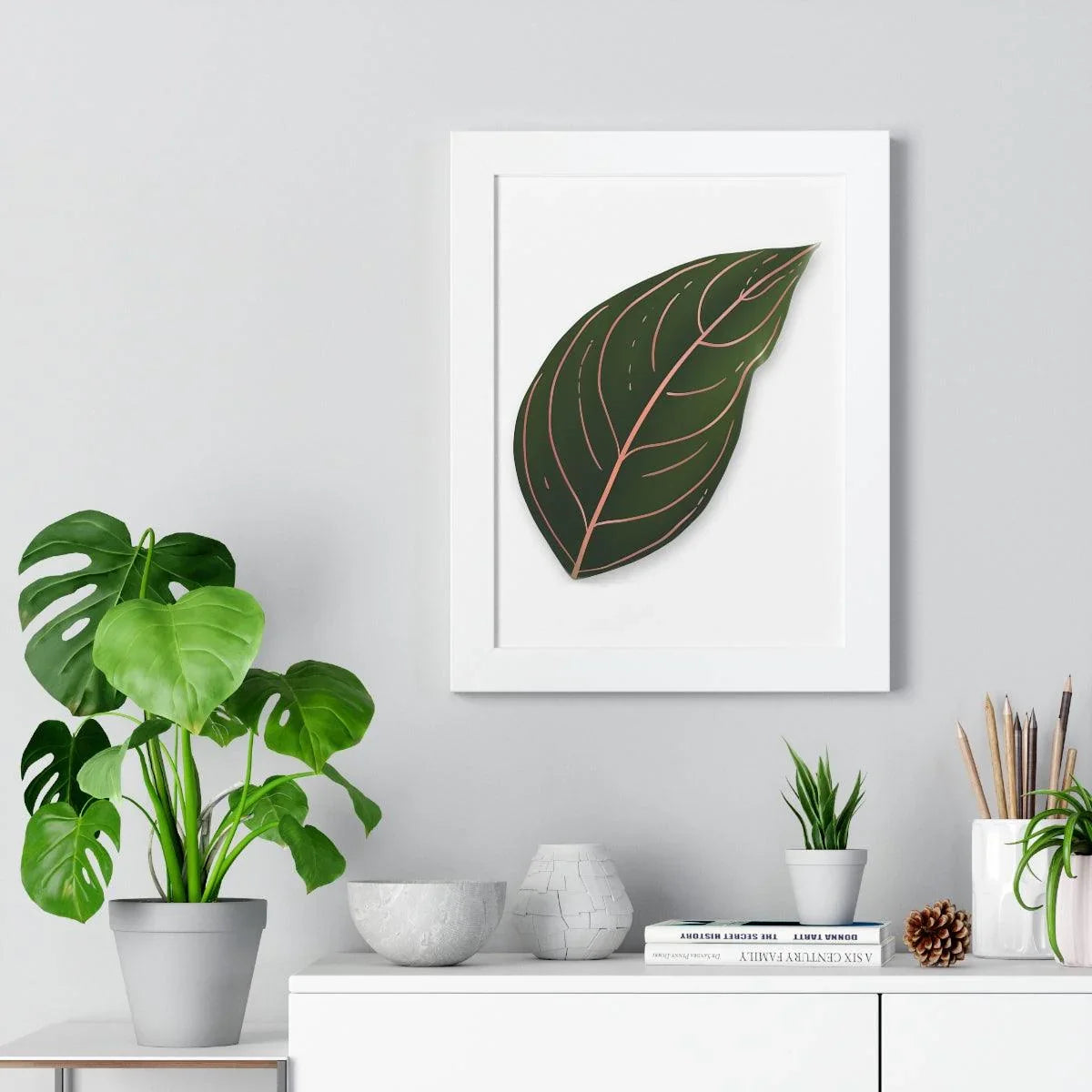 Bring the quiet drama of tropical foliage into your space with the Aglaonema Rotundum Print. This framed botanical art captures the delicate silhouette of the Aglaonema Rotundum—a rare Chinese Evergreen variety—with elliptical leaves and pink-vein detailing that add a refined, contemporary texture to any wall.