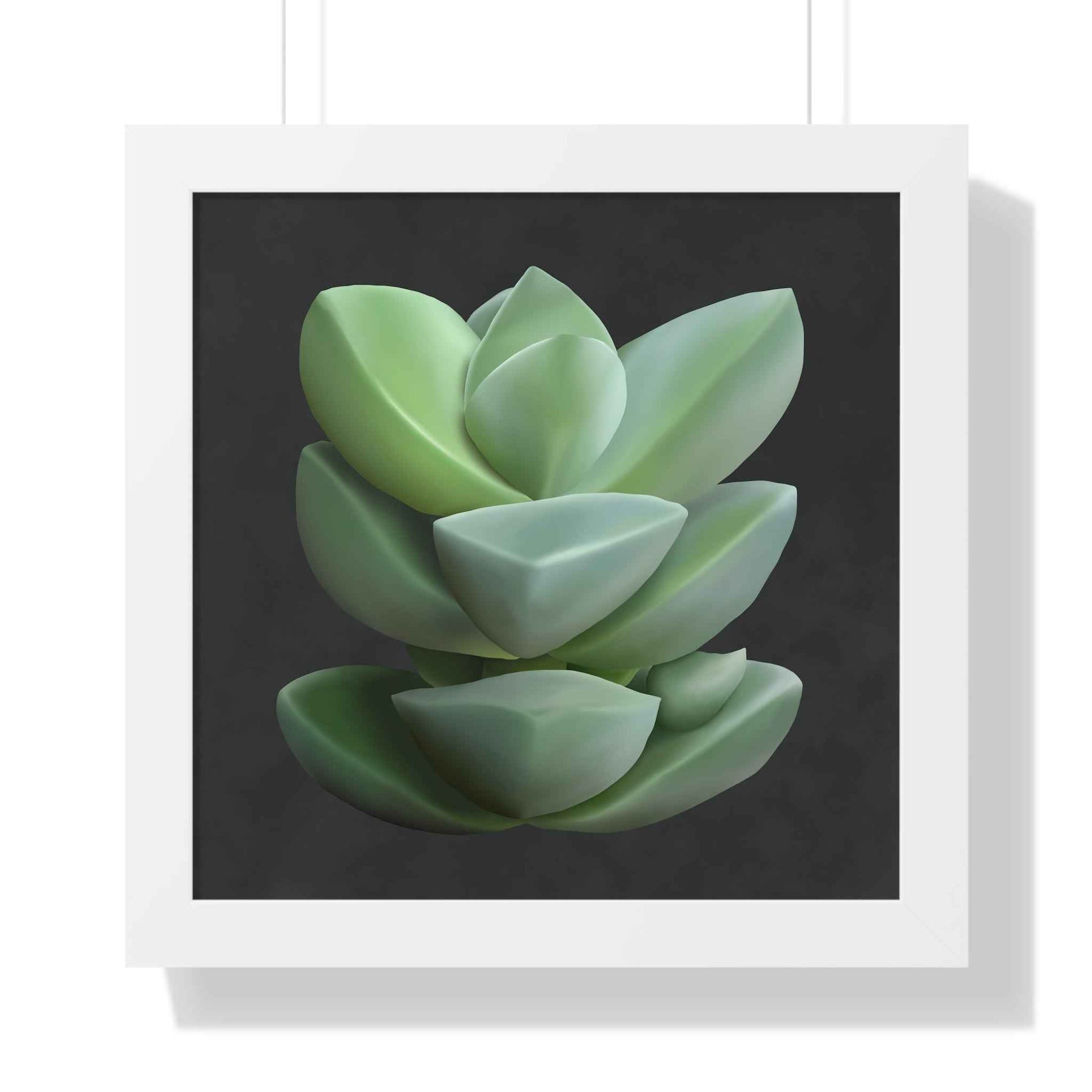 Crassula Succulent Framed Poster Vertical Botanical Wall Art elevates quiet, nature-inspired moments into everyday decor. This serene vertical poster centers a soft, sculptural Crassula succulent rendered in muted greens against a deep charcoal background, creating a calm focal point that complements modern interiors.