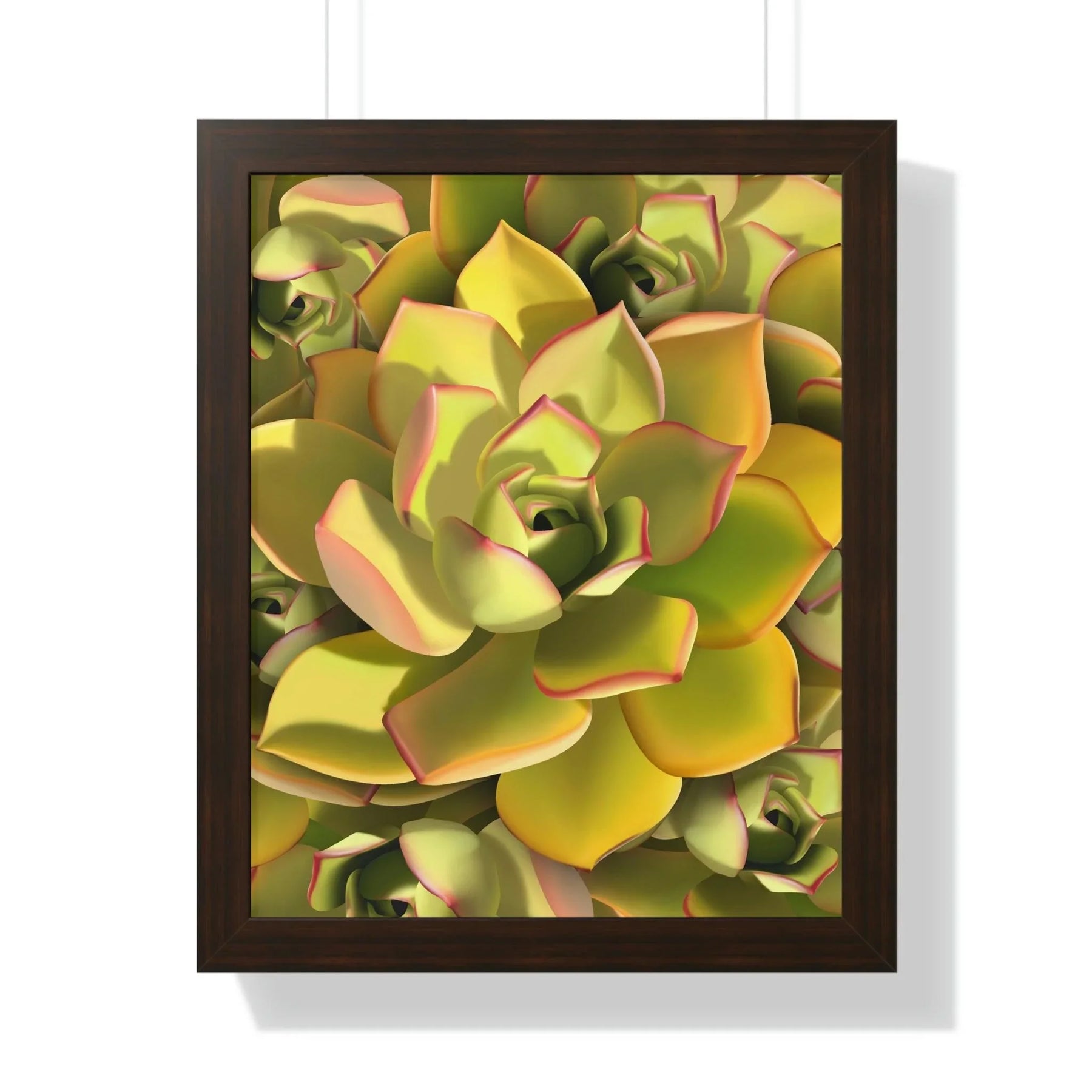 Noble Aeonium Framed Print Vibrant Succulent Wall Art In Black Walnut Frame For Home Decor