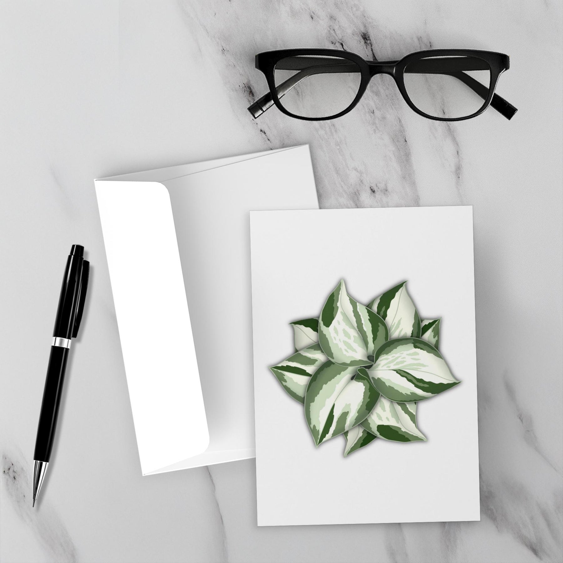 Let the tranquil charm of the Manjula Pothos transform ordinary messages into a little piece of living greenery. This premium set features hand‑drawn botanical art that captures the lush, variegated heart leaves of the popular pothos plant, rendered in rich dark greens, light greens, and delicate white streaks.