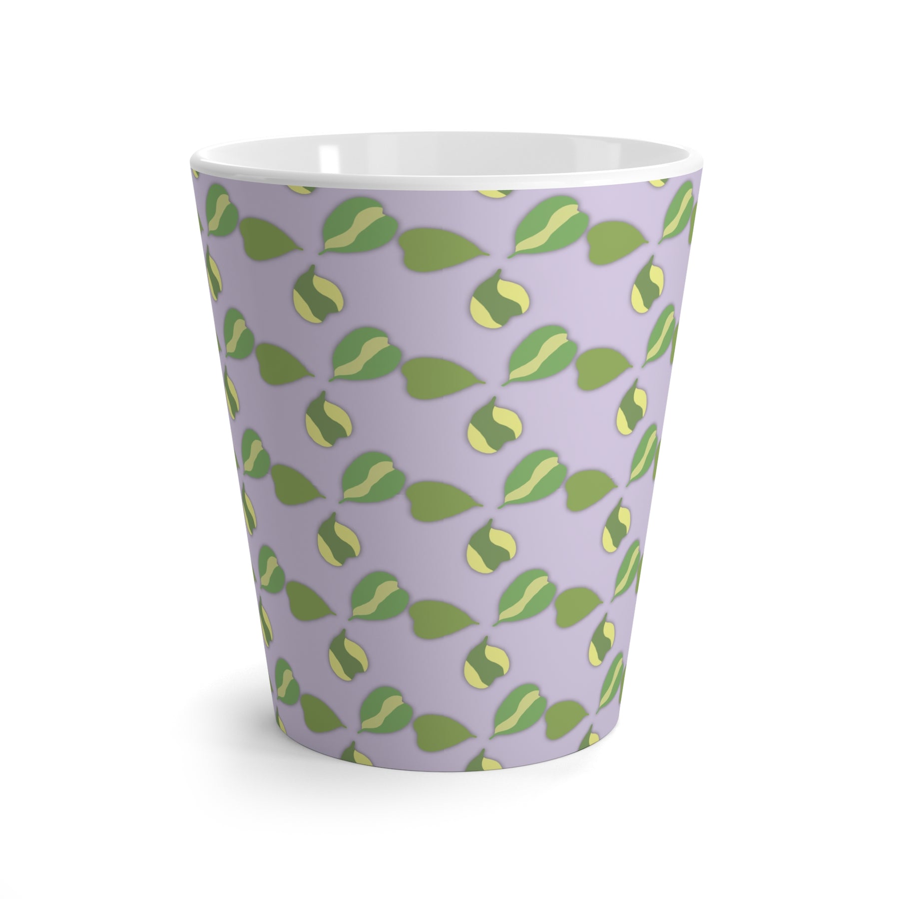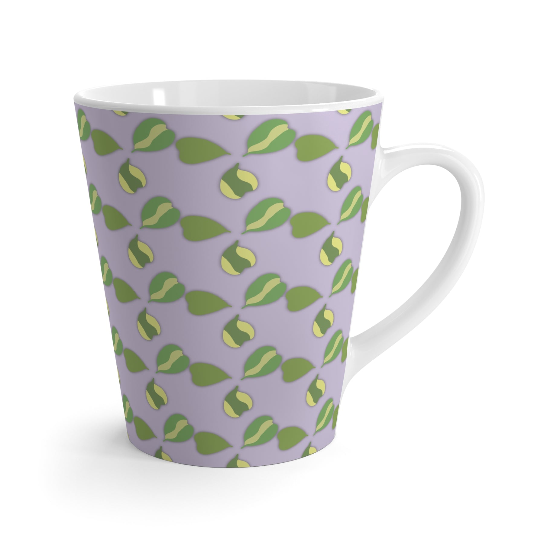Hoya Kerrii Pattern Mug with Green Heart Leaf Design on Lavender Ceramic 12 Oz Dishwasher Safe