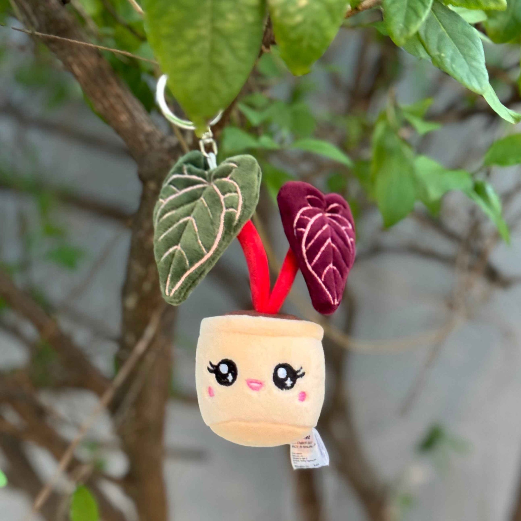 The Anthurium plush keychain is a 5-inch miniature tribute to the rare Red Crystal aroid, designed to bring a touch of tropical foliage charm wherever you go. This soft plush keychain captures the luxurious, heart-shaped leaves of the exotic Anthurium Red Crystallinum, known for its deep velvety texture and striking red veined foliage. Ideal for plant lovers and collectors, this botanical keyring adds a stylish plant keychain accent to your bag or keys while offering a durable, lightweight charm that lasts.
