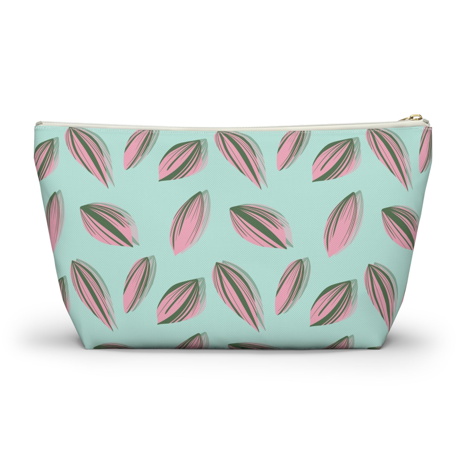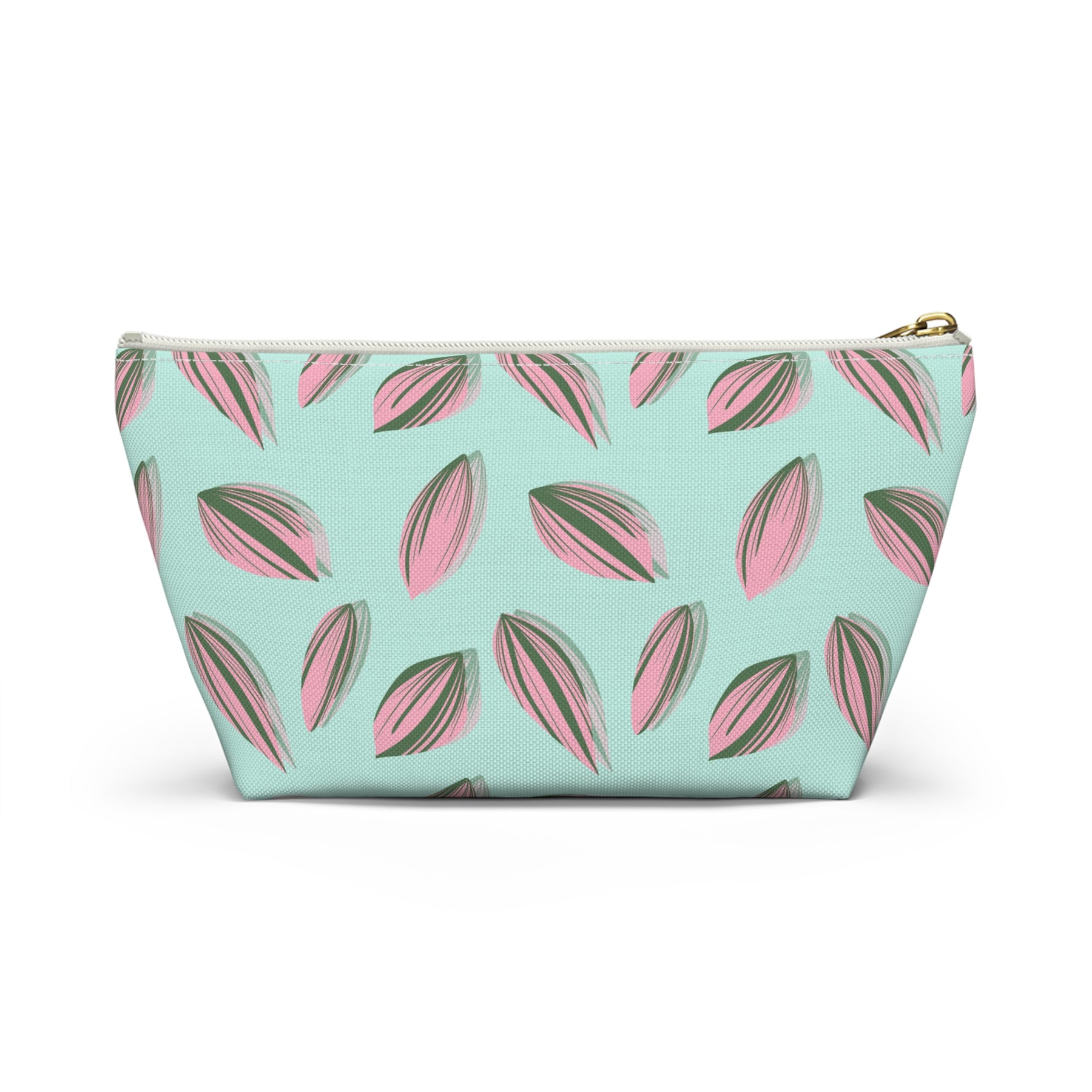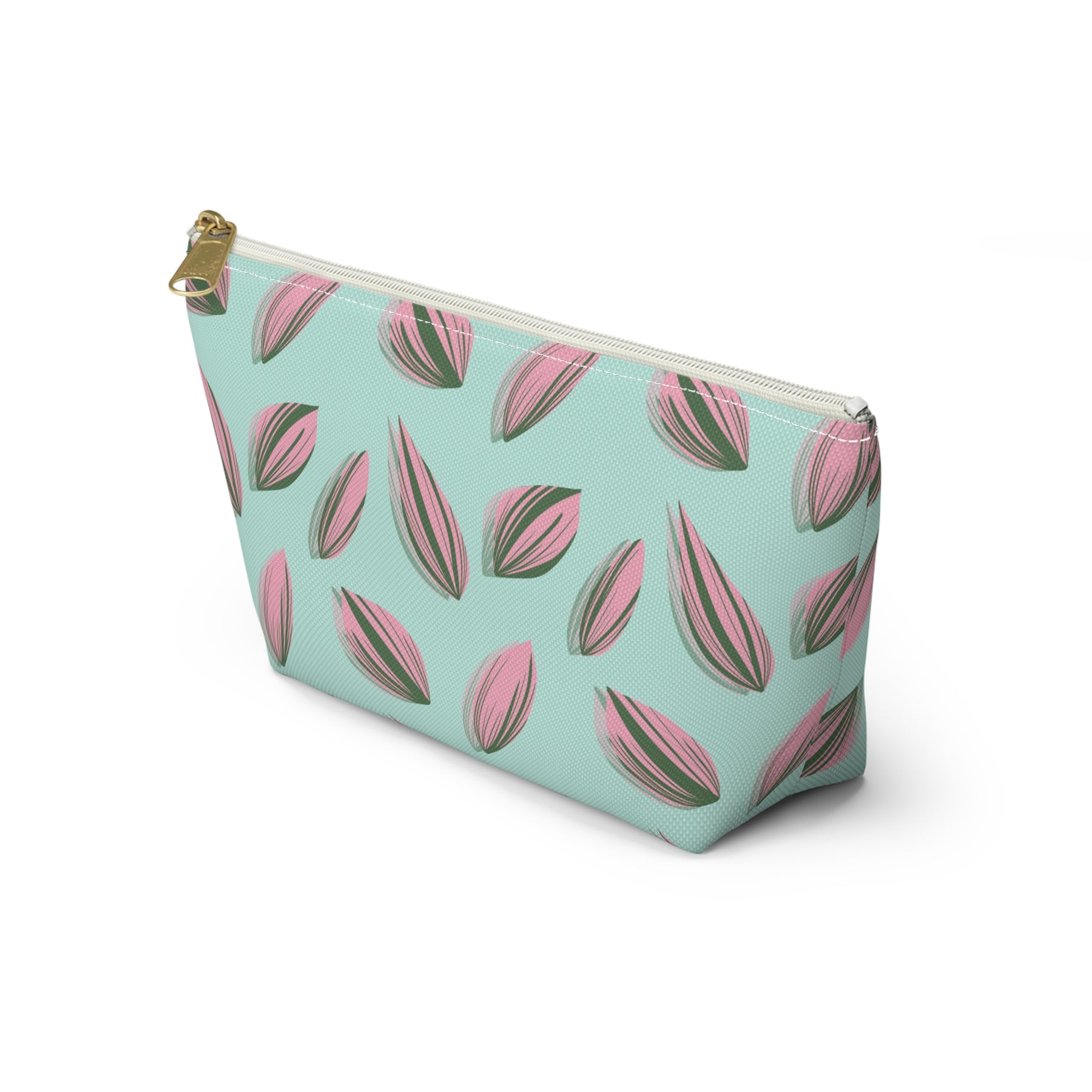 Meet your new everyday companion: the Tradescantia Nanouk Pattern Accessory Pouch. This pocket-sized floral makeup bag bursts with spring energy, featuring a mint background and painterly pink-and-olive leaves that seem to drift across the fabric. It’s the kind of pastel pouch that adds a cheerful, artful touch to any tote or dresser.