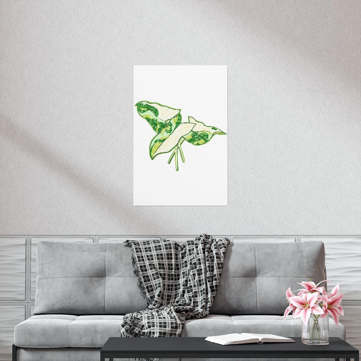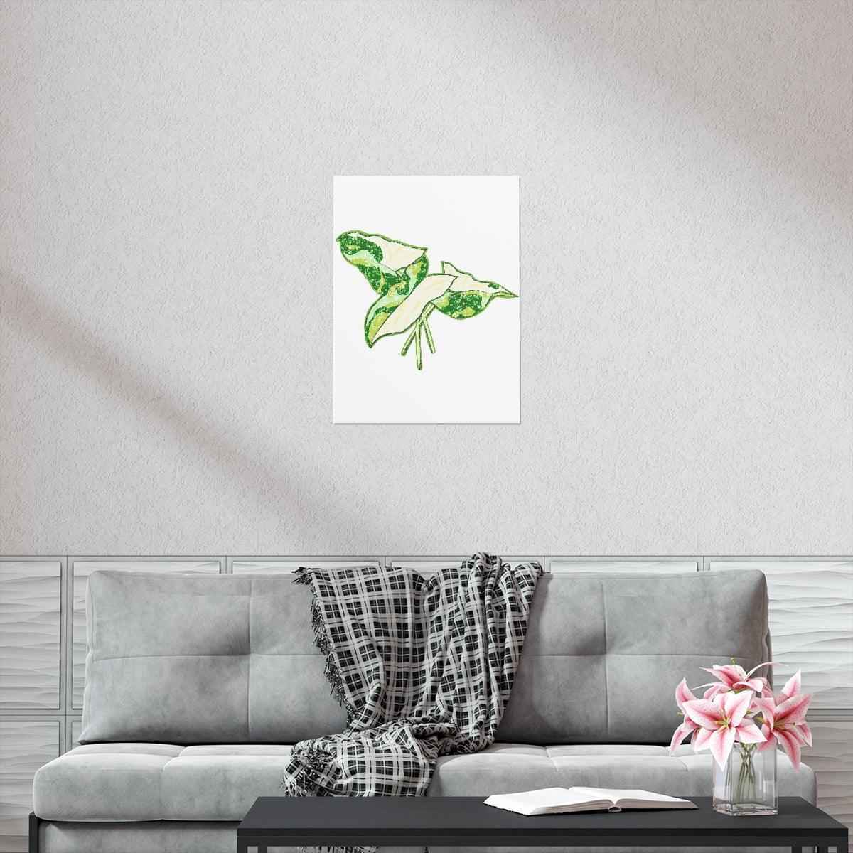• Authentic botanical illustration – Hand-drawn styling captures the natural elegance of the Syngonium leaf, offering an organic, painterly charm that pairs beautifully with minimalist or eclectic interiors.