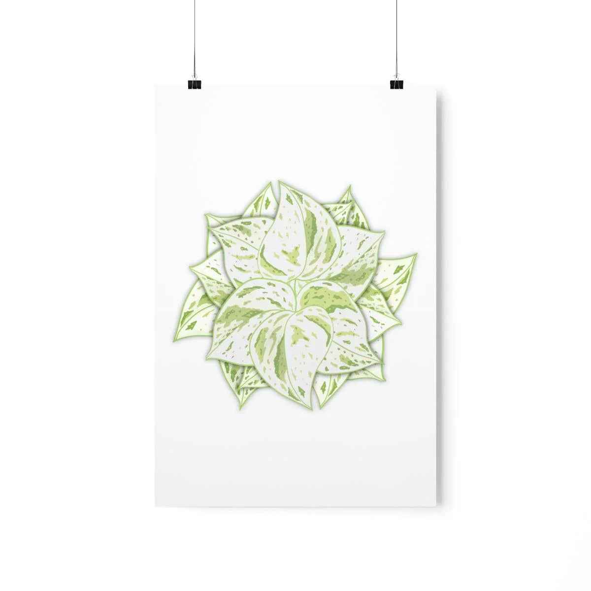 Printed on durable 175gsm museum grade paper, the Snow Queen Pothos Print offers a refined texture that holds color beautifully. The archival pigmented inks deliver fade-resistant, lasting vibrancy, so the leaf detail remains crisp for years. The hand-drawn pothos leaves are rendered to capture authentic botanical texture, while the translucent poster effect lets ambient light interact with the print—creating depth and a soft glow as daylight shifts through the white foliage.