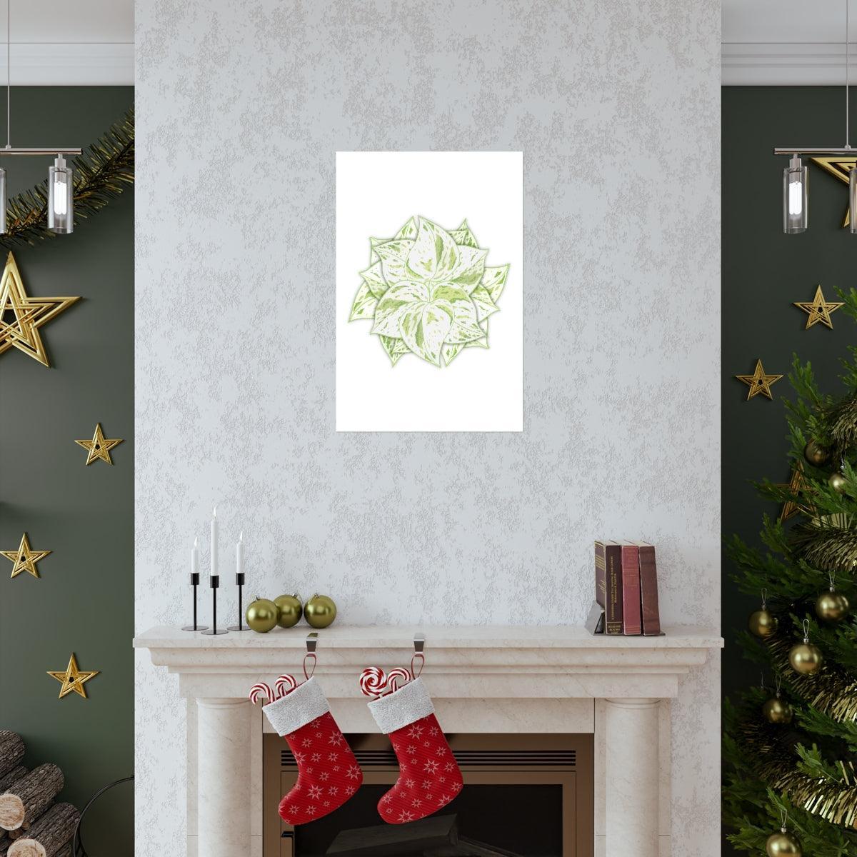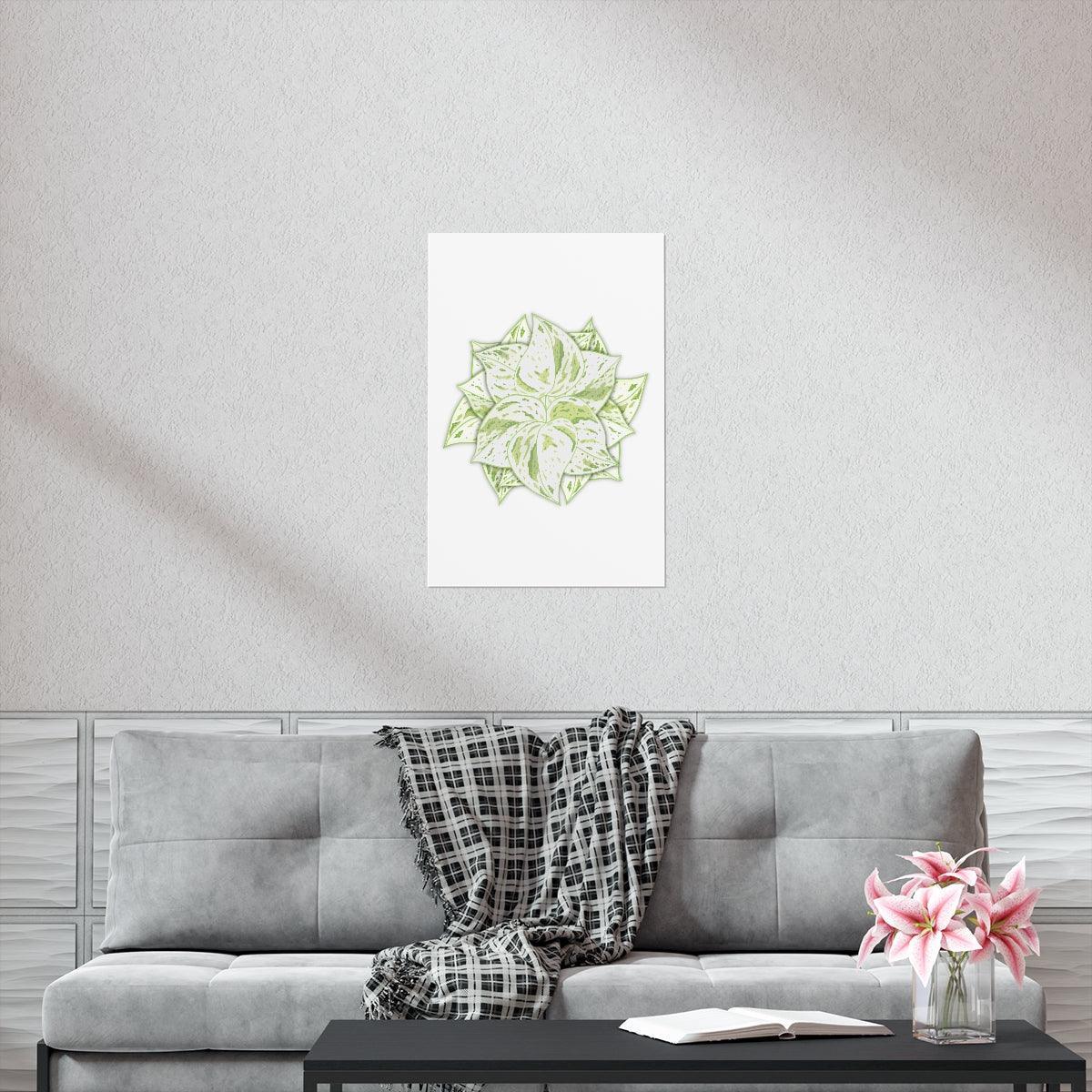 Snow Queen Pothos Print Variegated Botanical Wall Art on Museum Grade Paper Unframed