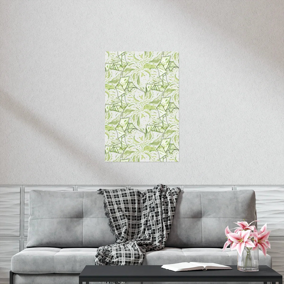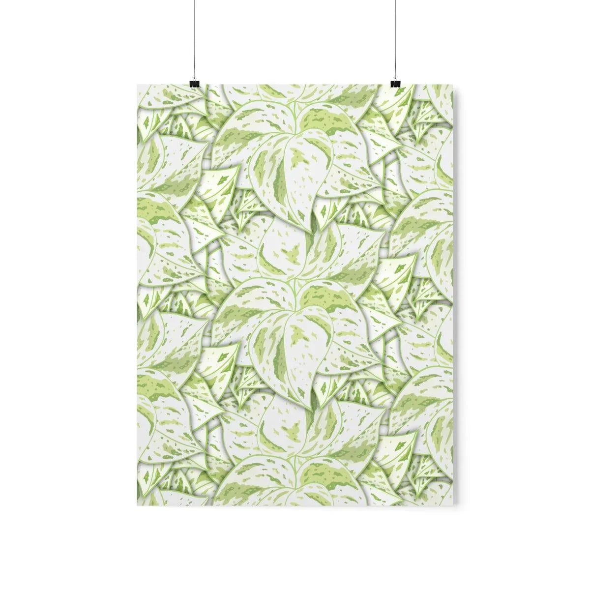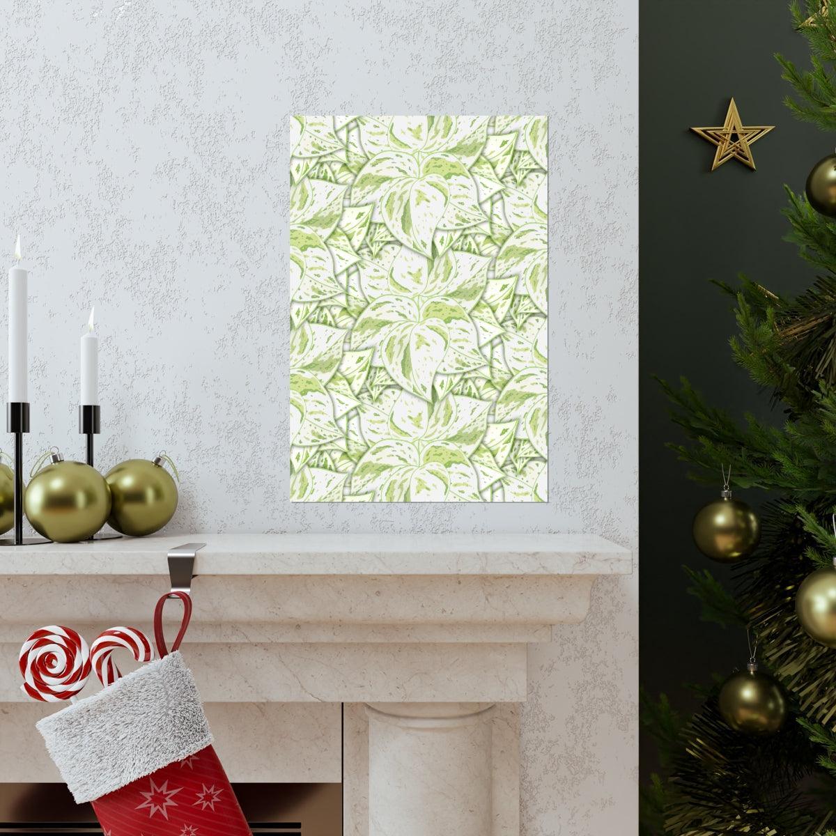 Snow Queen Pothos Print Variegated White Foliage Wall Art On Museum Grade Paper Unframed Poster