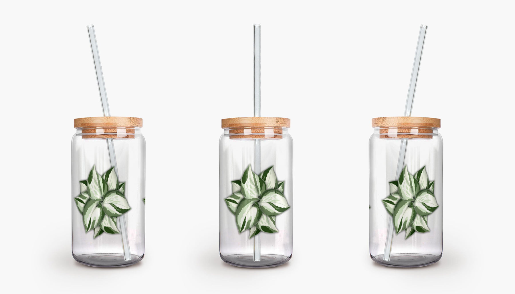 Manjula Pothos Soda Can Glass – 16 oz Durable Glass Tumbler with Bamboo Lid & Straw