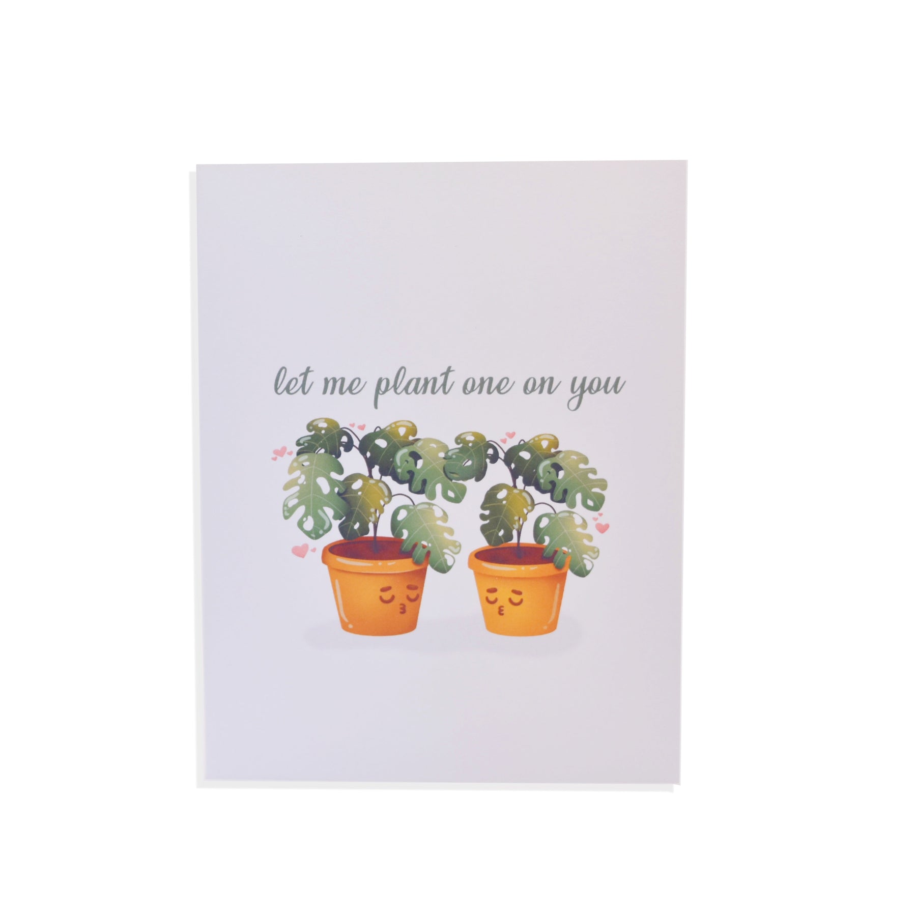 The Let Me Plant One On You Valentine's Day card is the perfect way to express your love and affection to lovers, family, and friends. This romance greeting card features a charming design that sets the tone for heartfelt messages and memorable moments. Crafted from premium smooth white cardstock, this envelope included card measures 4"x6" and offers a blank inside card ready for your personalized love card or romantic message card.