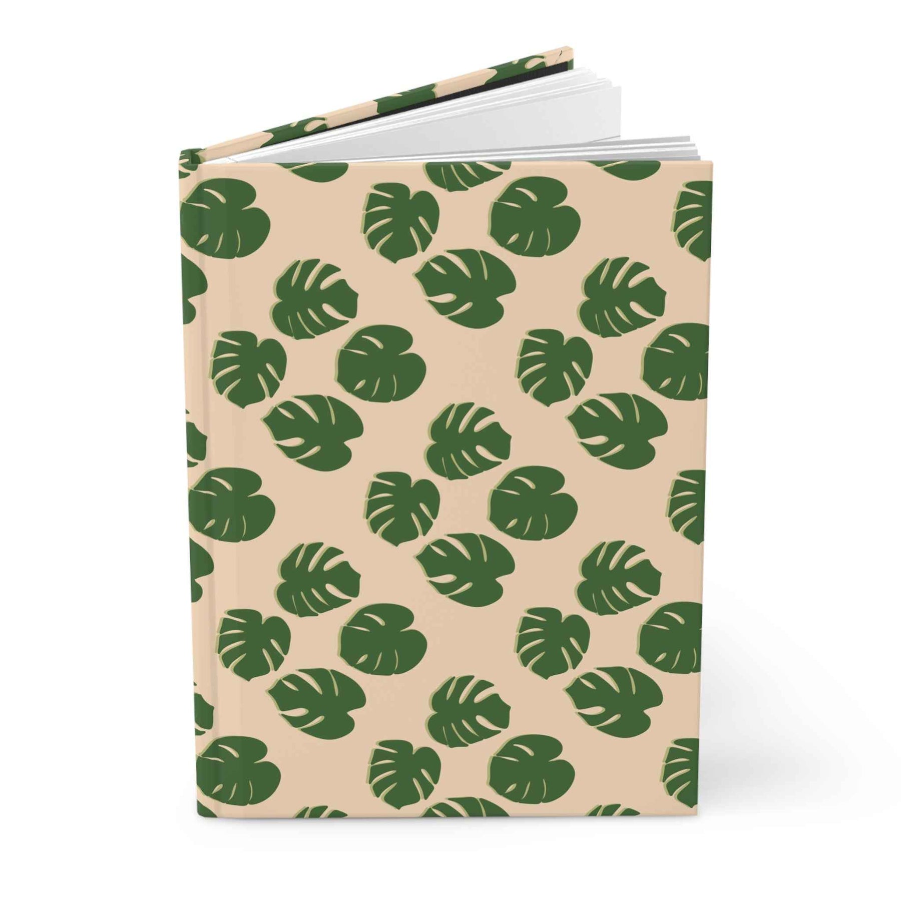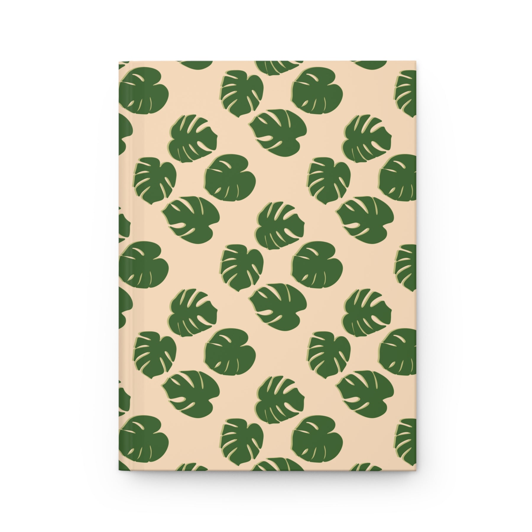 The cover showcases lush monstera leaves in rich green set against a soft pastel beige backdrop, finished in a tactile matte texture that feels premium in your hand. This hardcover journal protects your notes from wear, while its restrained palette ensures it complements any workspace—whether you’re at home, in the studio, or on the go.