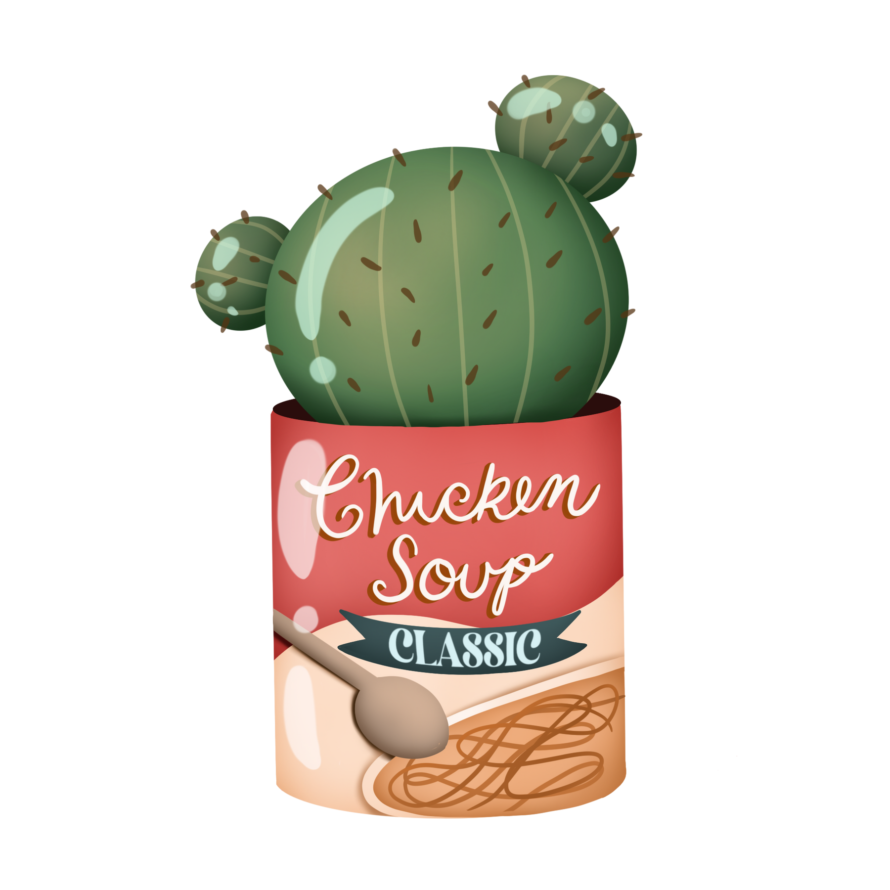 Ideal for anyone who enjoys plant stickers or wants to showcase their love for quirky designs, the Chicken Noodle Soup Can Cactus sticker transforms ordinary items into conversation starters. Add this laptop decal or water bottle sticker to your collection today and enjoy the blend of humor and botanical charm wherever you go.