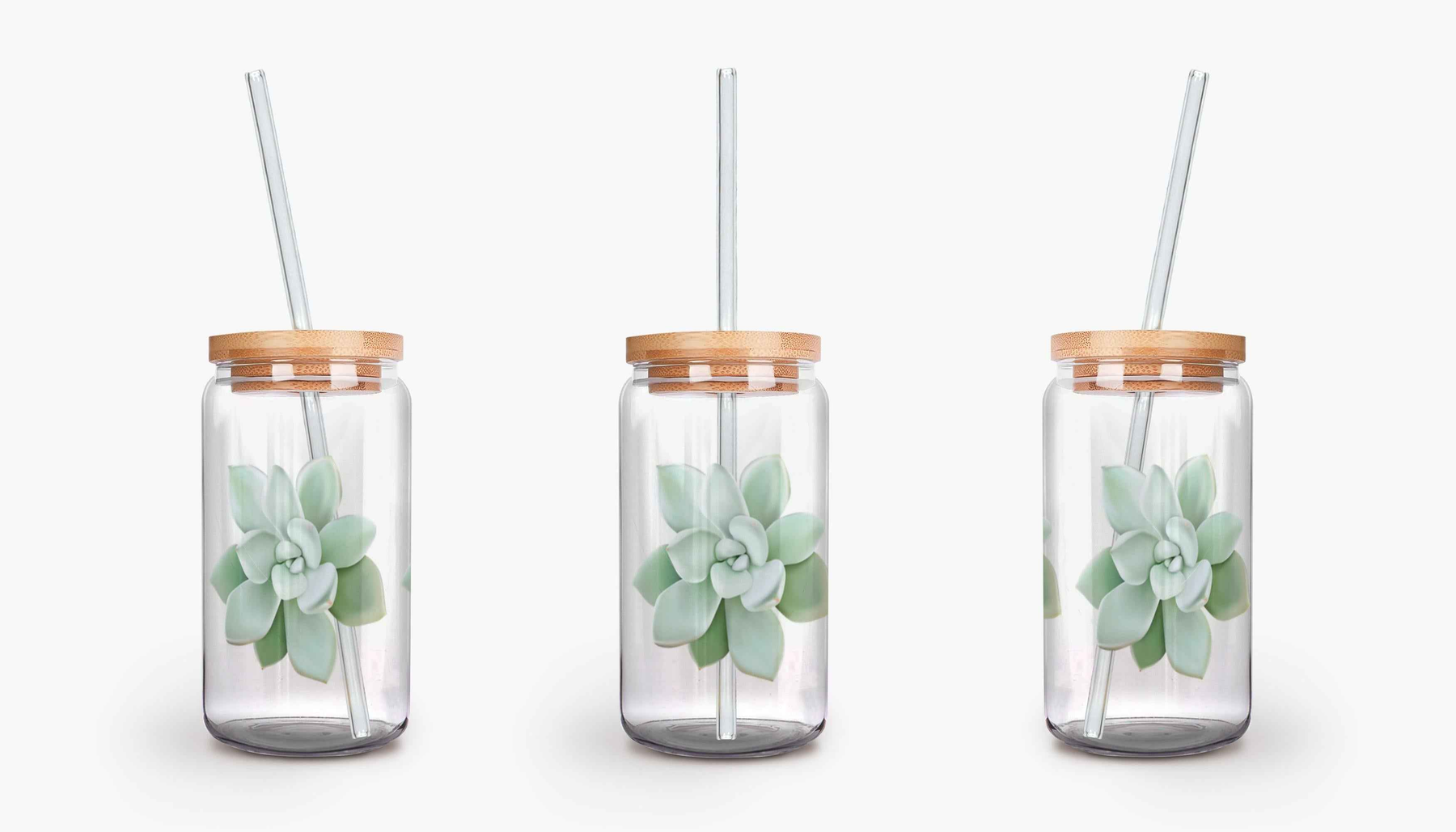 Pachyveria Haagei Soda Can Glass Tumbler Succulent Design 16 Ounce Durable Glass Drinkware With Bamboo Lid And Straw