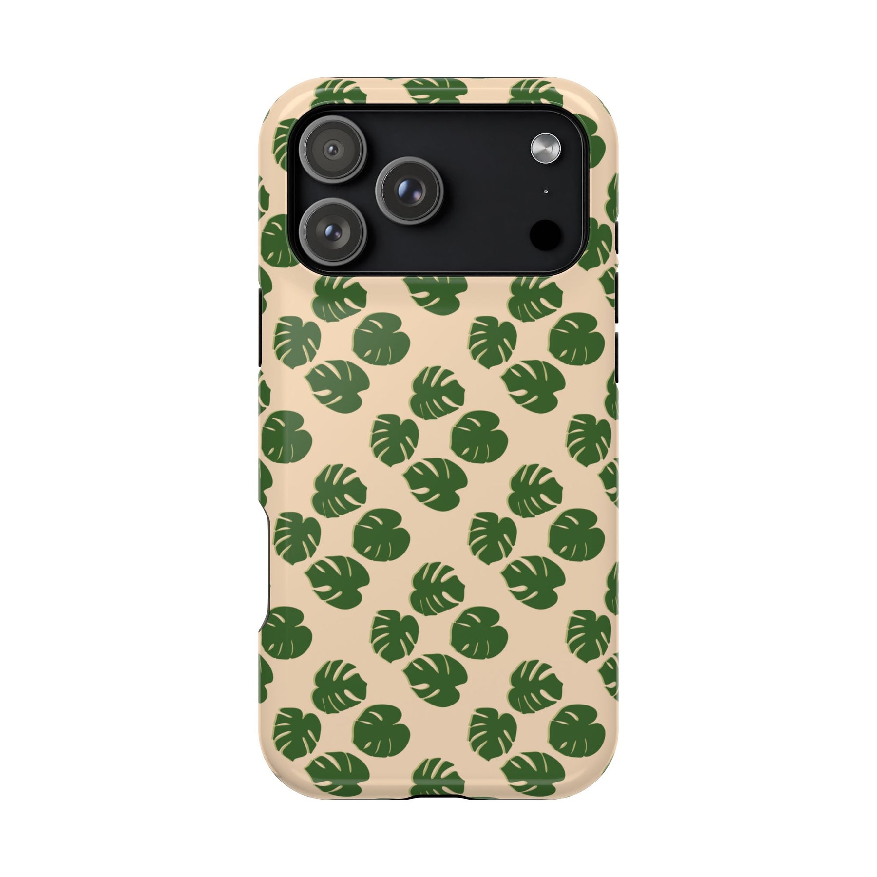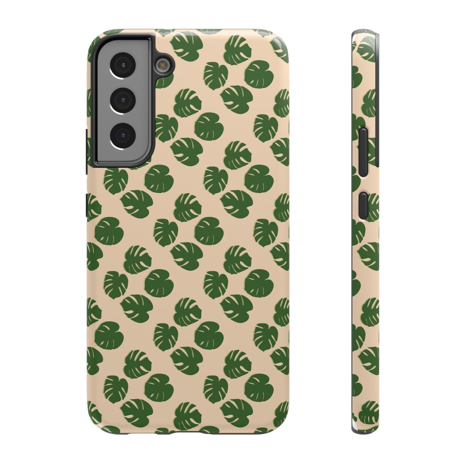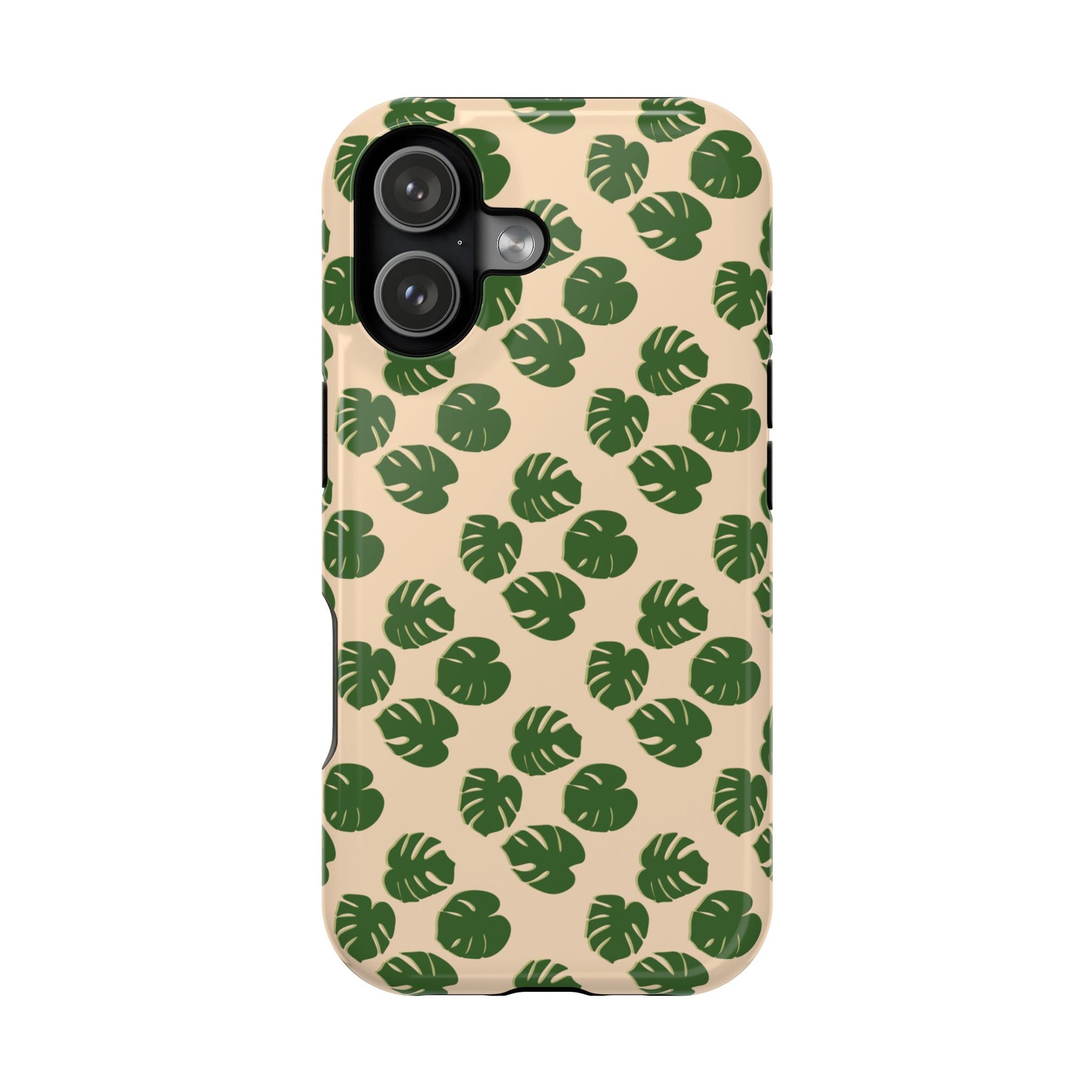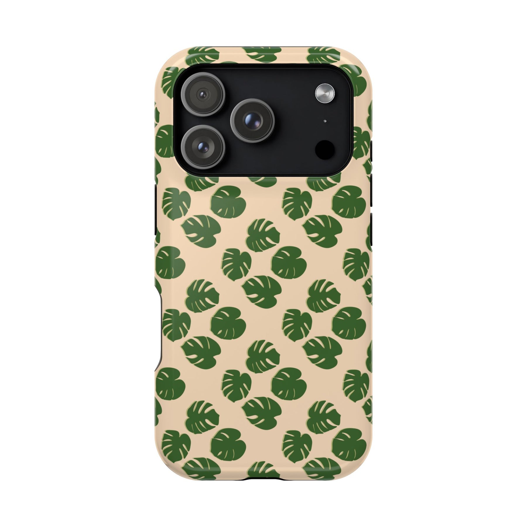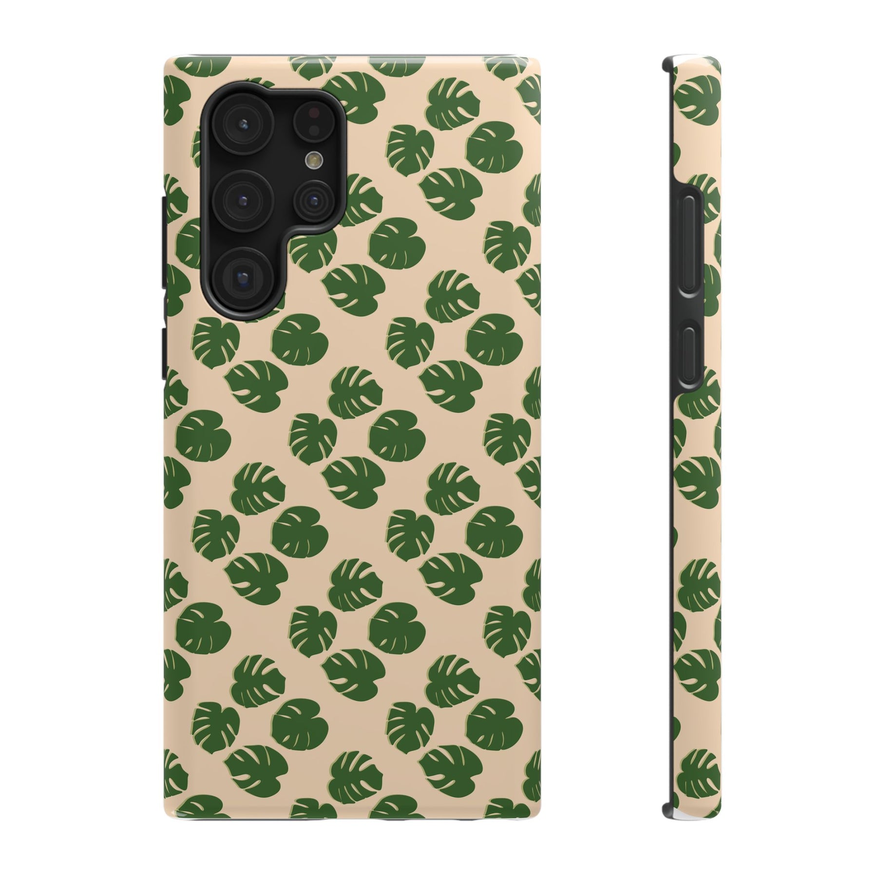 Monstera Pattern Impact-Resistant Phone Case Green Botanical Protective Cover Dual Layer Slim Design