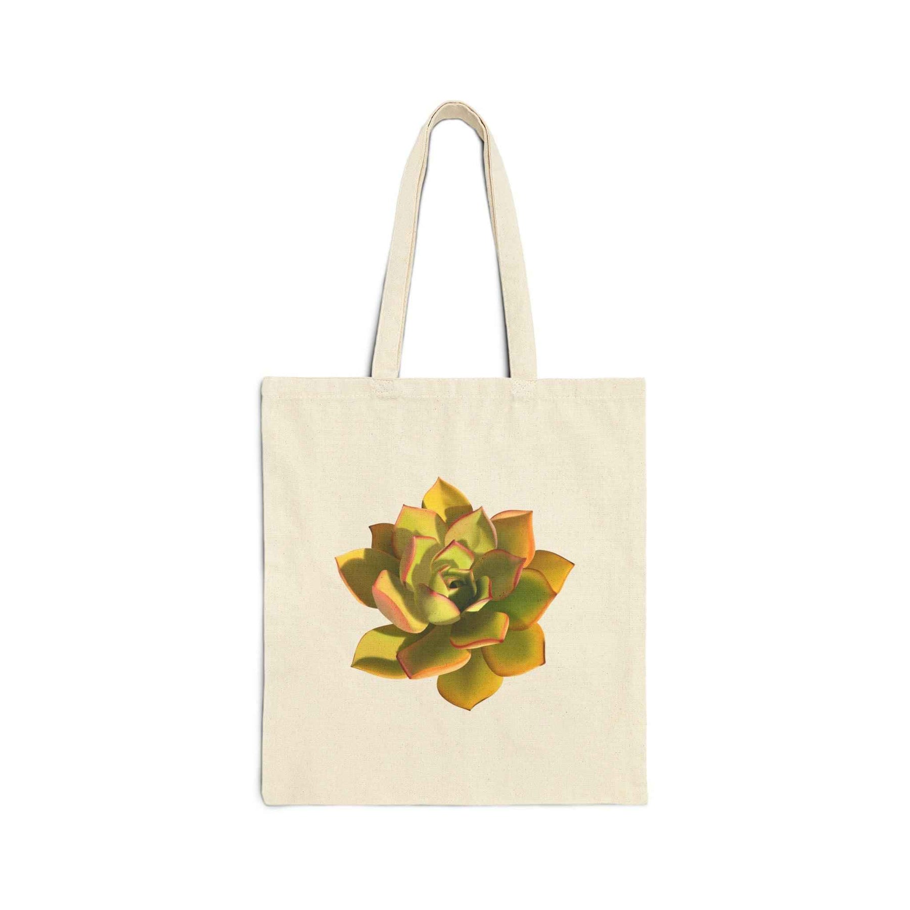 Succulent Tote Bag – Noble Aeonium Plant Design | Organic Cotton Canvas brings botanical artistry to everyday errands. Printed with a vibrant Noble Aeonium plant design on 100% organic cotton canvas, this tote is built for plant lovers who value sustainable style as much as practicality.