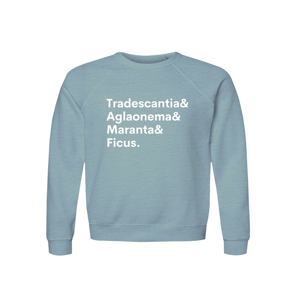 Plant Lover Sweatshirt Organic Cotton Raglan By The Potted Pixel Plant Lovers Tradescantia, Aglaonema, Maranta, Ficus
