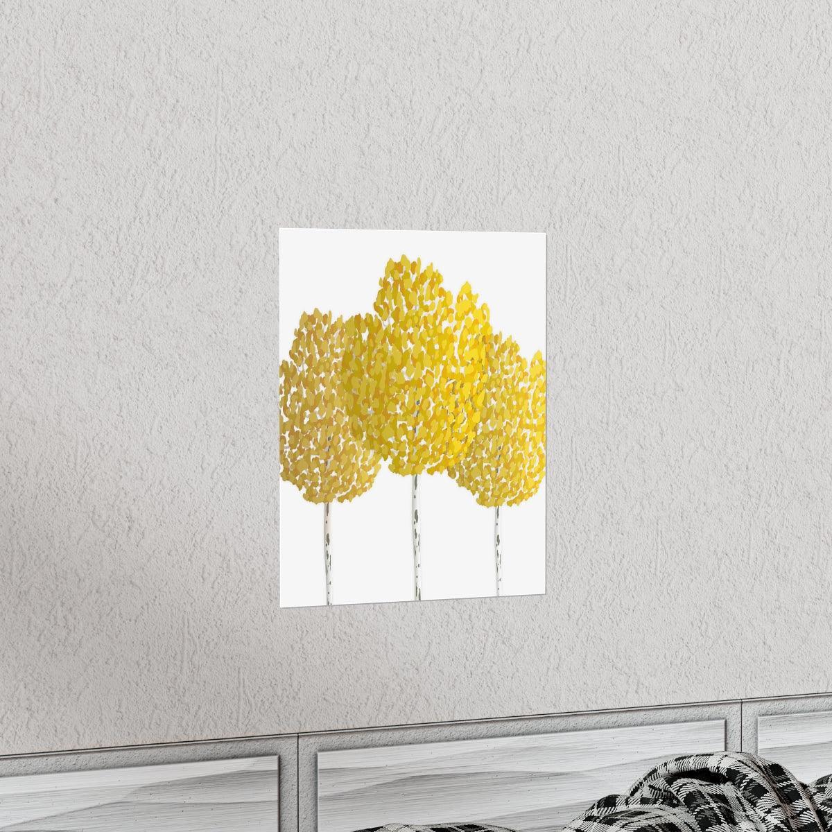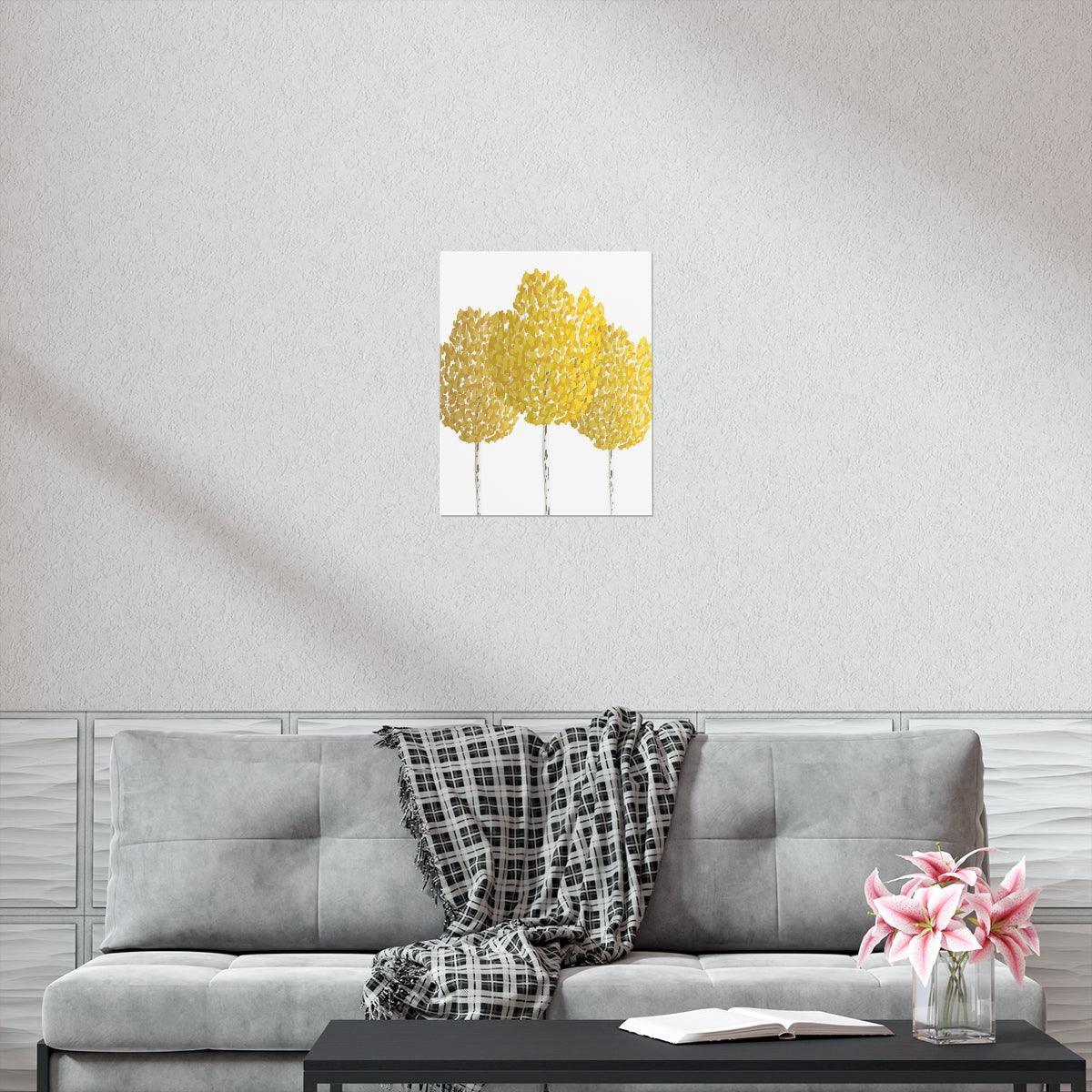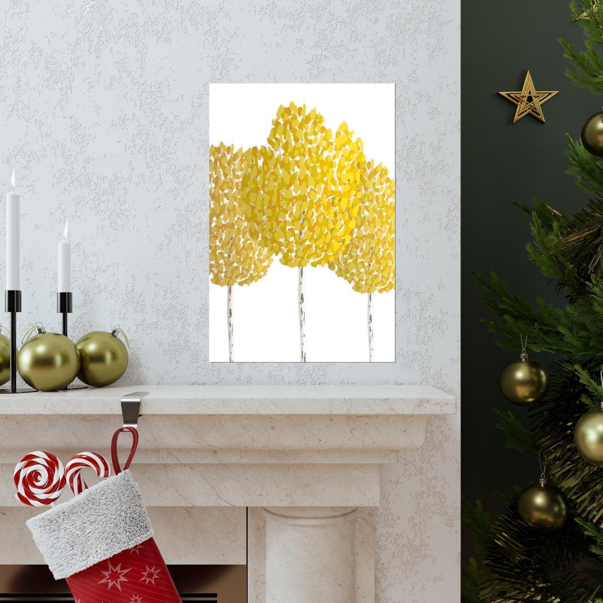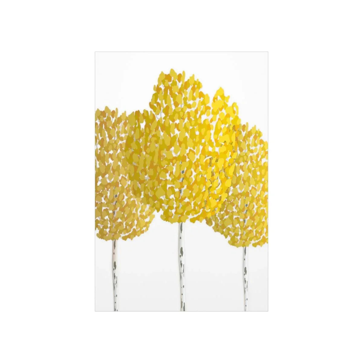 Transform the feel of any room with the Fall Aspen Print—the fine art poster that brings the warmth and quiet beauty of autumn indoors. This unframed print showcases the iconic yellow foliage of the quaking aspen, rendered as a hand-drawn study that captures the season’s gentle transformation from green to gold. Printed on premium museum-grade paper with archival inks, it delivers color that remains vivid for years, even in bright living rooms and sunlit workspaces.