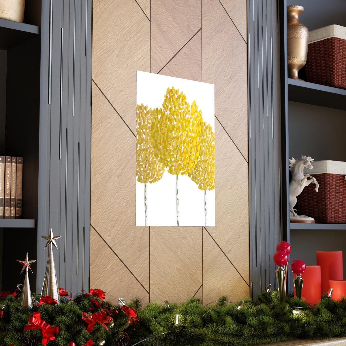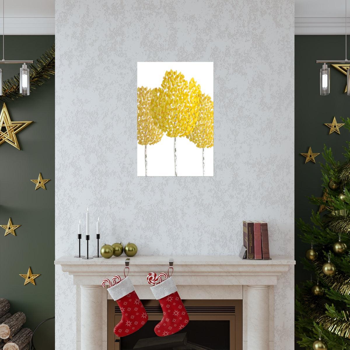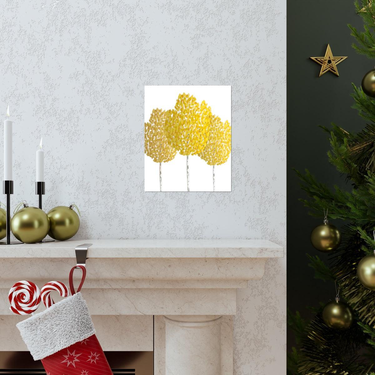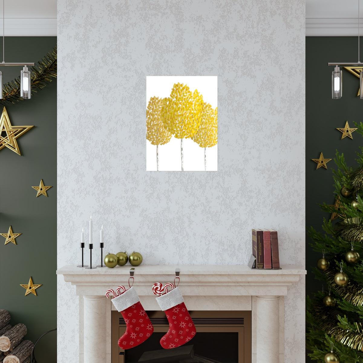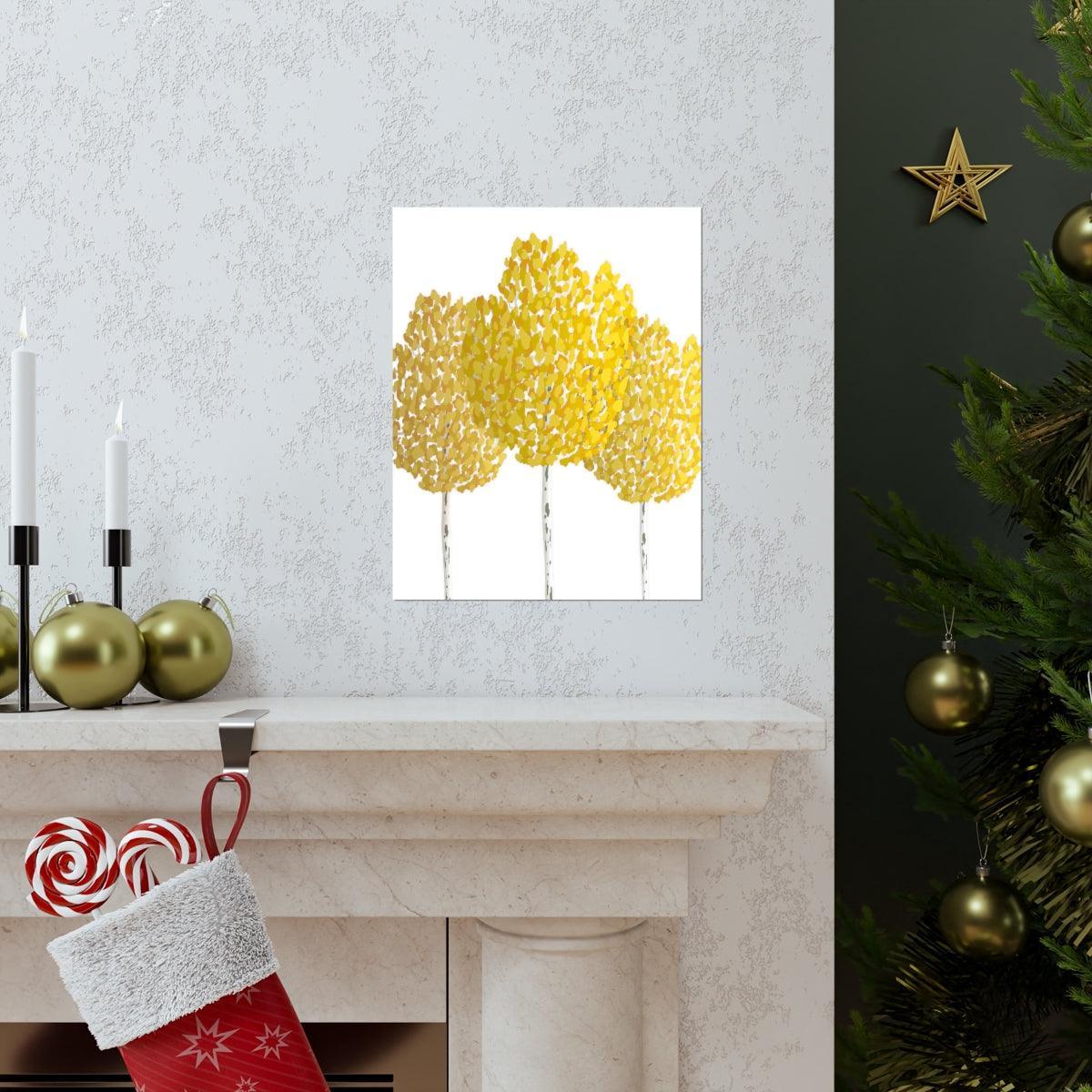 Transform the feel of any room with the Fall Aspen Print—the fine art poster that brings the warmth and quiet beauty of autumn indoors. This unframed print showcases the iconic yellow foliage of the quaking aspen, rendered as a hand-drawn study that captures the season’s gentle transformation from green to gold. Printed on premium museum-grade paper with archival inks, it delivers color that remains vivid for years, even in bright living rooms and sunlit workspaces.