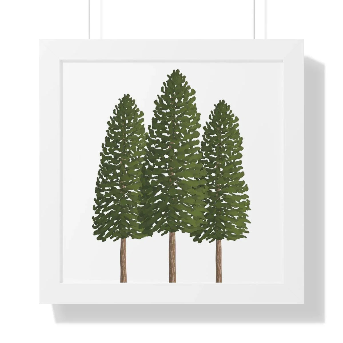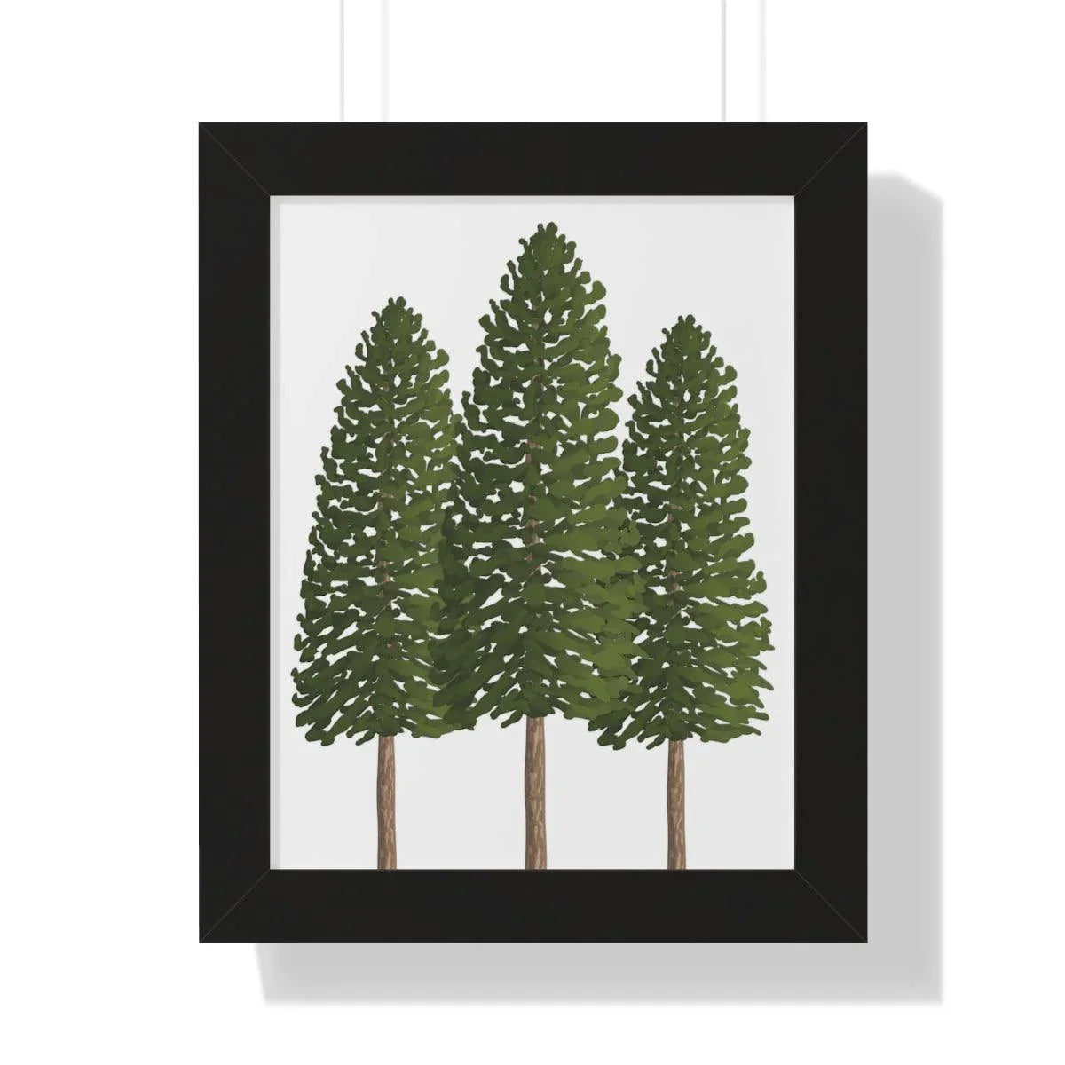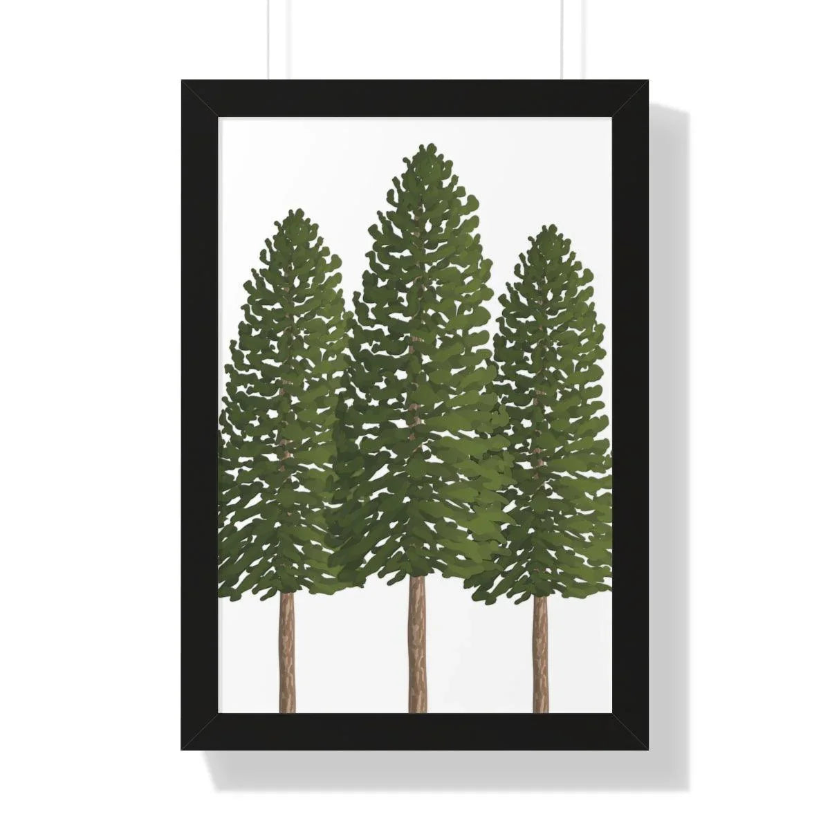 Pair it with your favorite interior style—whether you lean toward sleek modern, warm traditional, or cozy cabin vibes. Available in three framing options to suit your space: a crisp black frame for contemporary contrast, a warm walnut frame that echoes natural wood tones, or a clean white frame for a bright, minimalist look. Each option enhances the print’s earthy tones and makes the three pines feel instantly at home in any room.