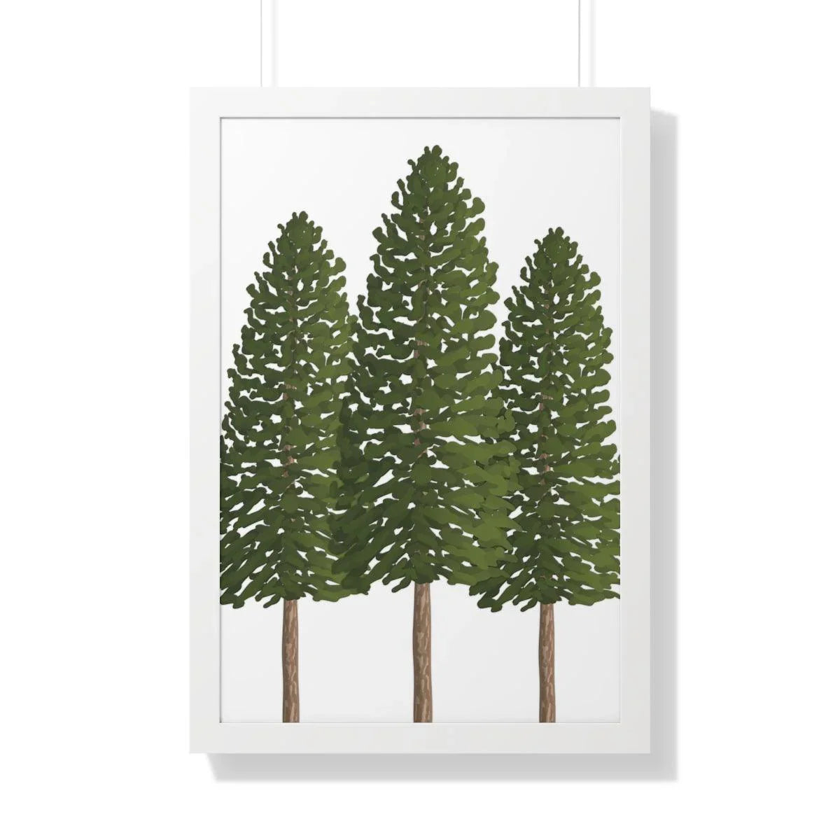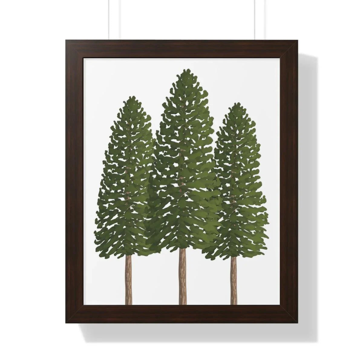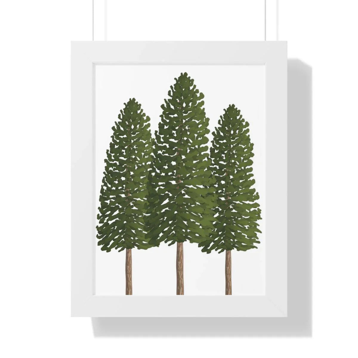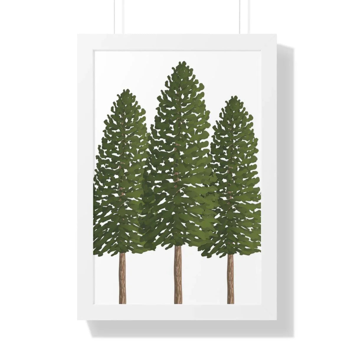 Pair it with your favorite interior style—whether you lean toward sleek modern, warm traditional, or cozy cabin vibes. Available in three framing options to suit your space: a crisp black frame for contemporary contrast, a warm walnut frame that echoes natural wood tones, or a clean white frame for a bright, minimalist look. Each option enhances the print’s earthy tones and makes the three pines feel instantly at home in any room.