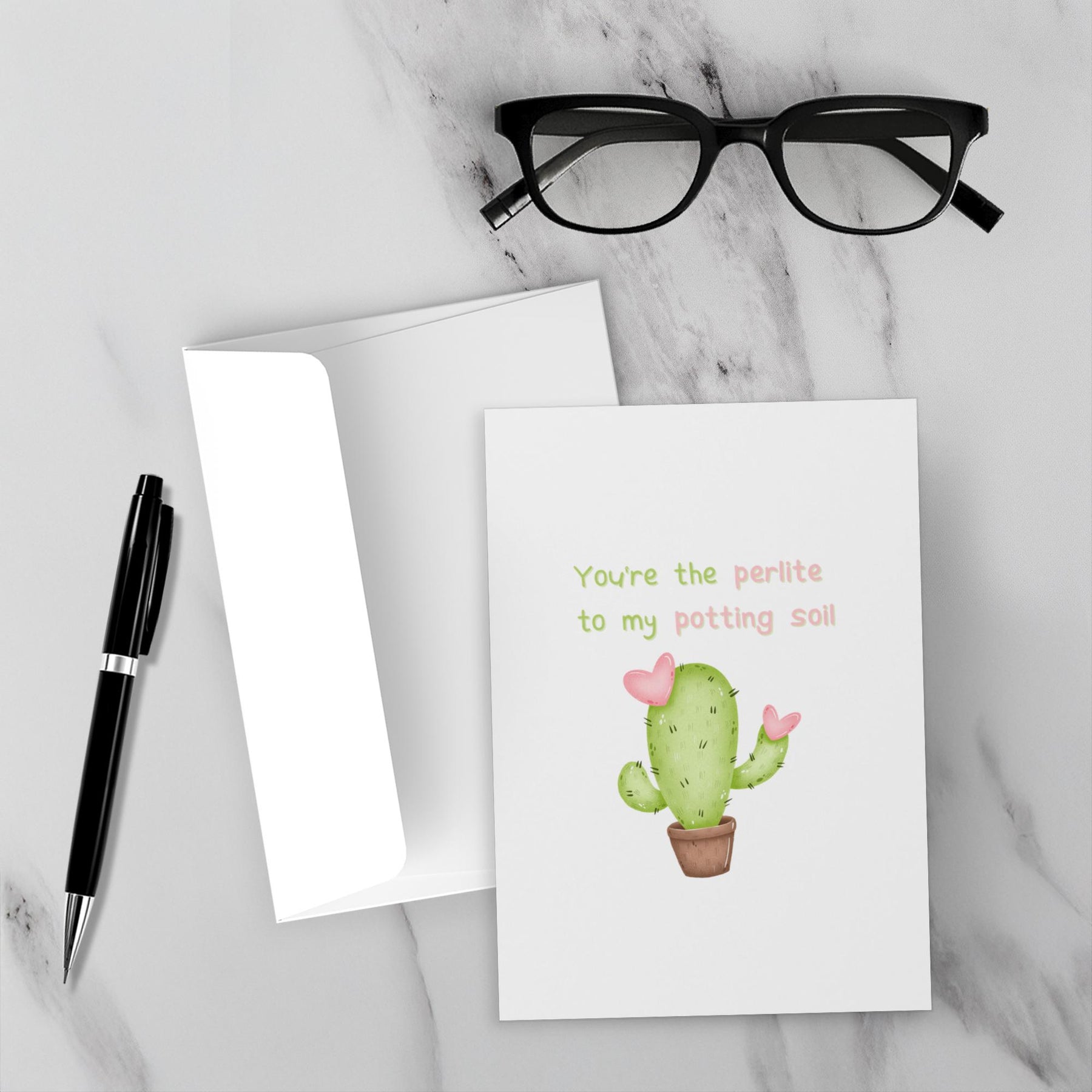 Meet the Cactus Valentines Day Card from The Potted Pixel—a charming blend of botanical whimsy and heartfelt sentiment. This succulent greeting card stands out with a playful cactus illustration on the front, accented by pastel accents, and a blank interior that invites you to write a message that’s truly your own.