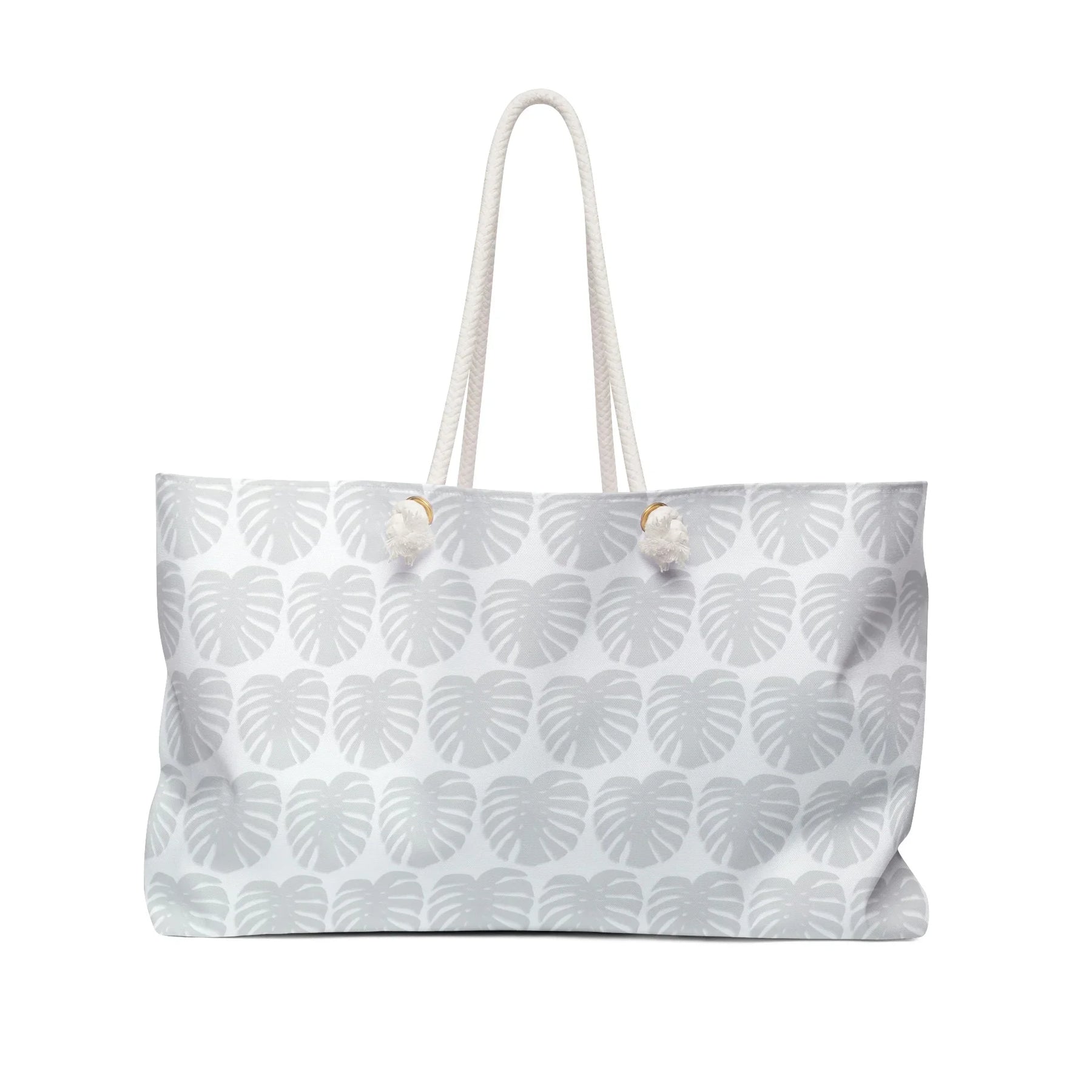 Weekender Tote Bag All Over Print Light Gray Monstera Leaf Pattern With Durable Rope Handles For Travel