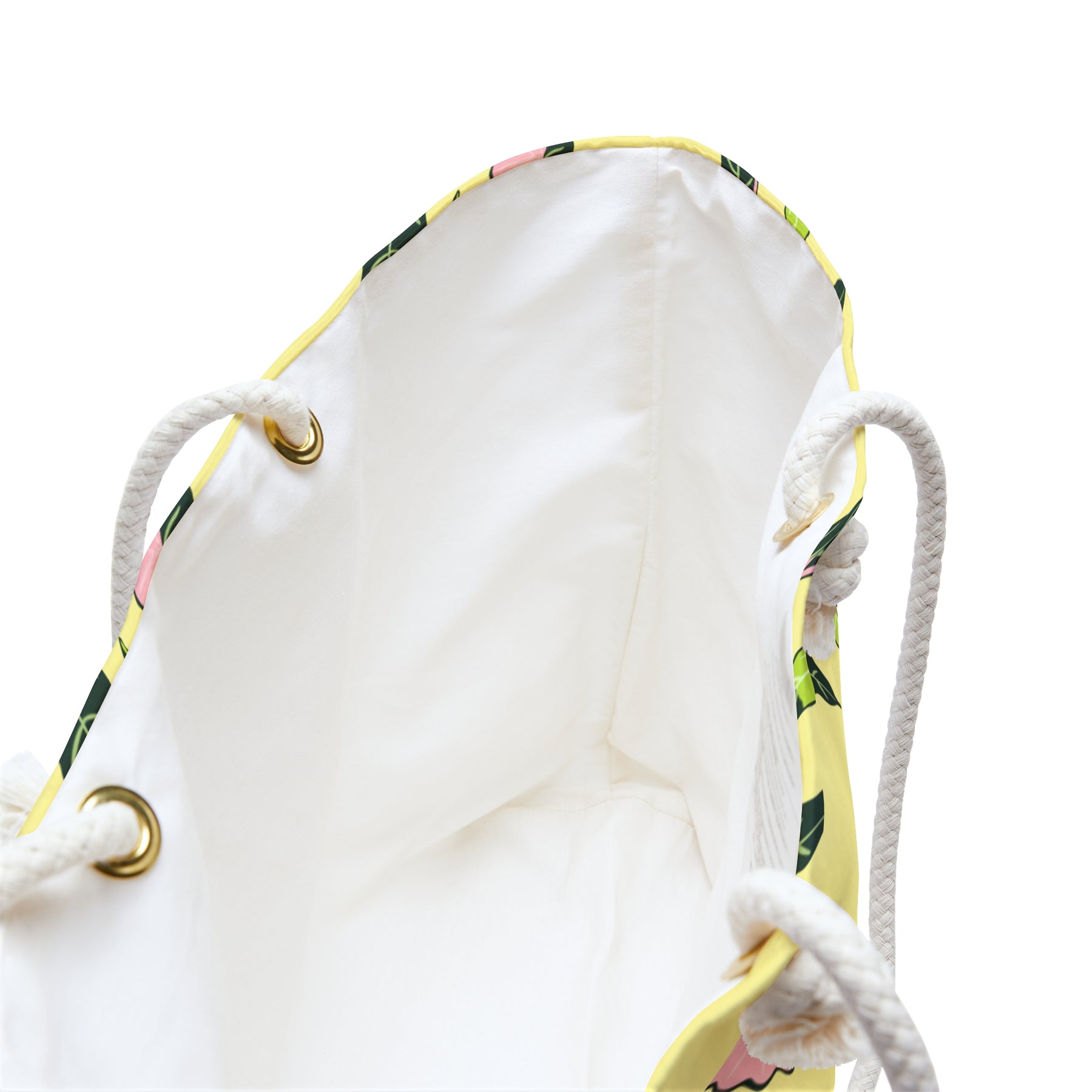 Durable, easy‑care construction. Crafted from 100% spun polyester, this tote is ready for the rigors of travel, beach days, and weekend trips. The clean, cream interior lining makes finding smaller items a breeze, and the all‑over print completes the look with a cohesive, single‑image design from every angle.