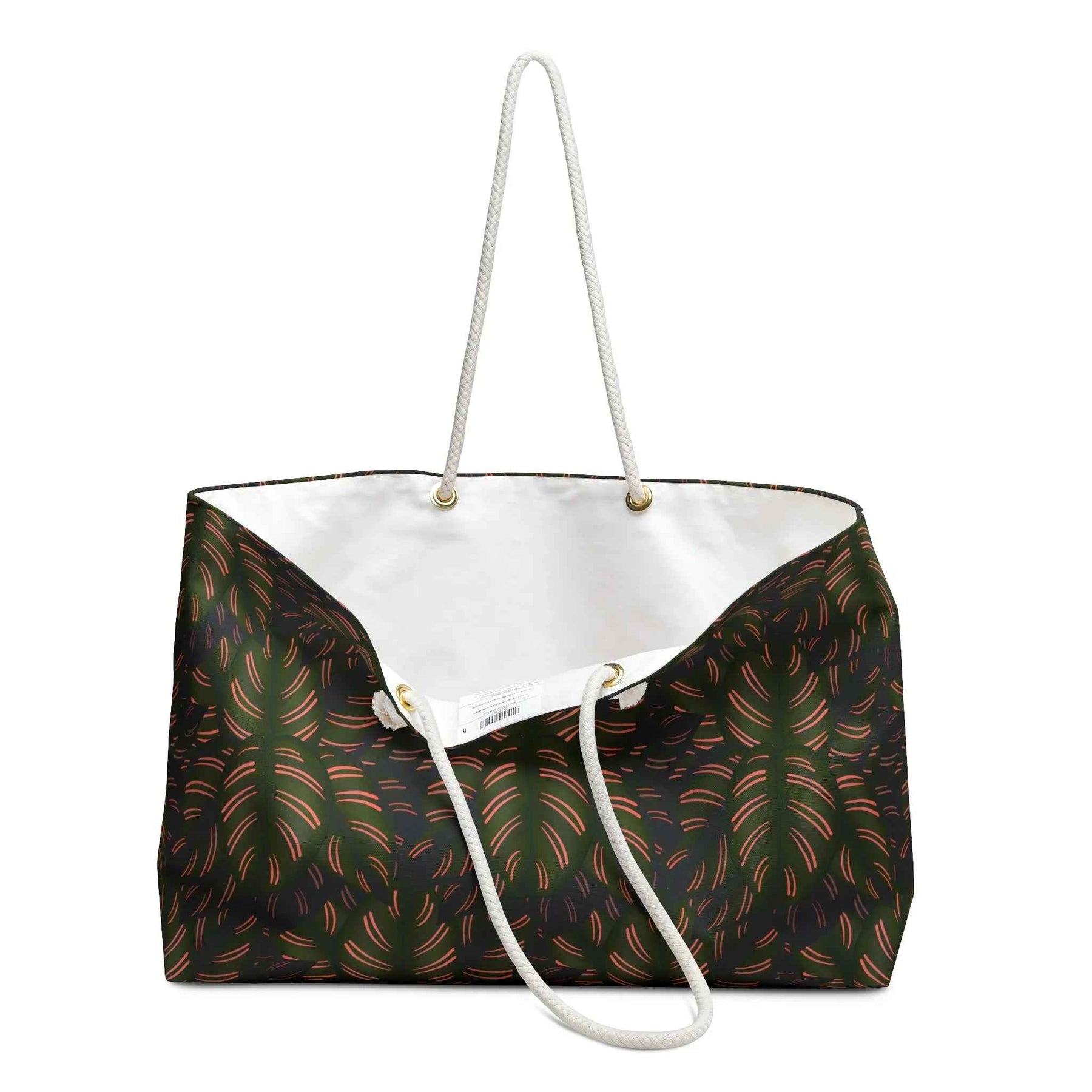 Meet the Weekender Tote Bag with the Calathea Pinstripe Design—an oversized, durable travel tote built for weekend escapes, beach days, and everyday adventures. Its generous 24" x 13" footprint makes it easy to carry clothes, gear, or hiking essentials in one reliable bag.